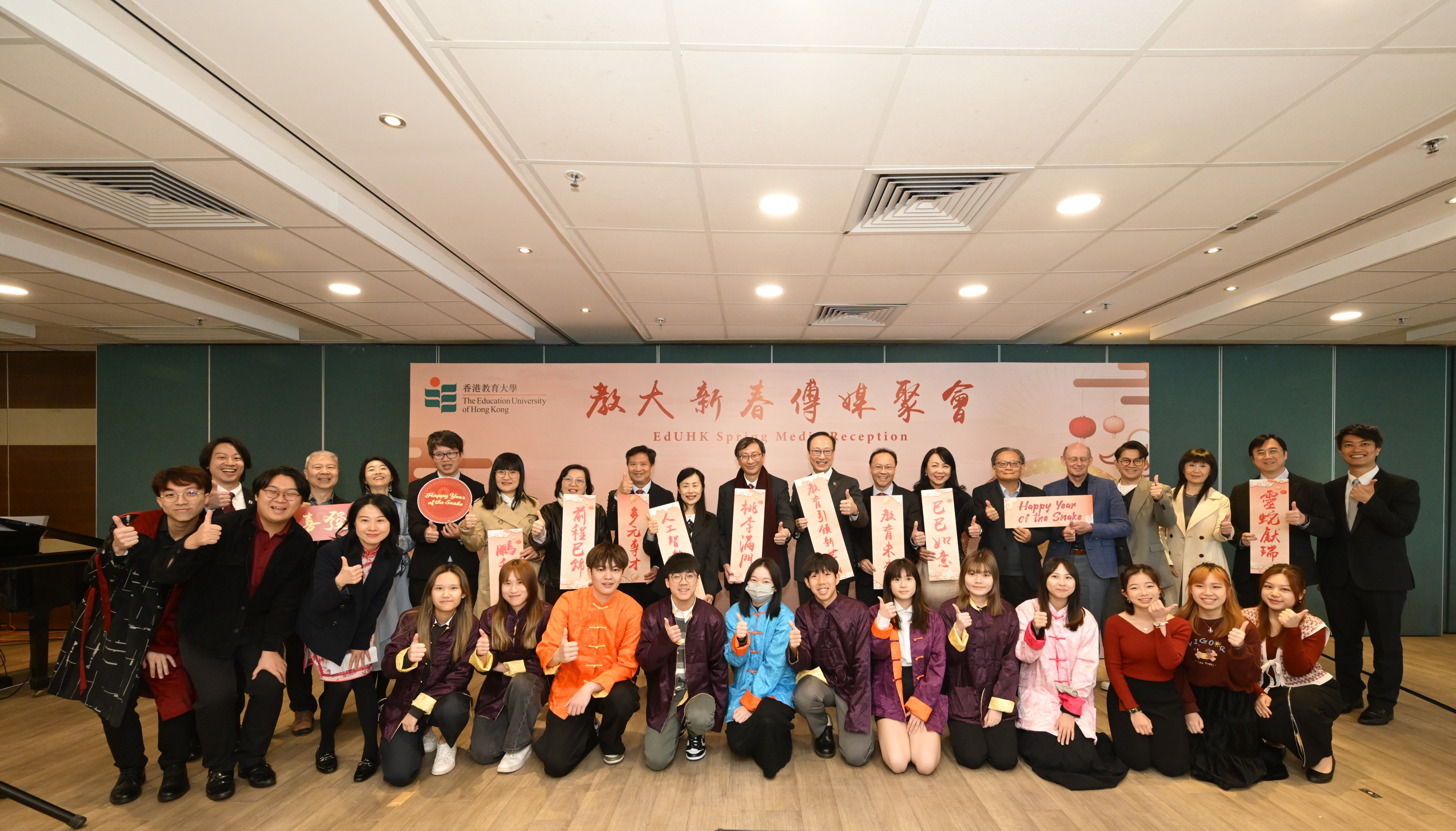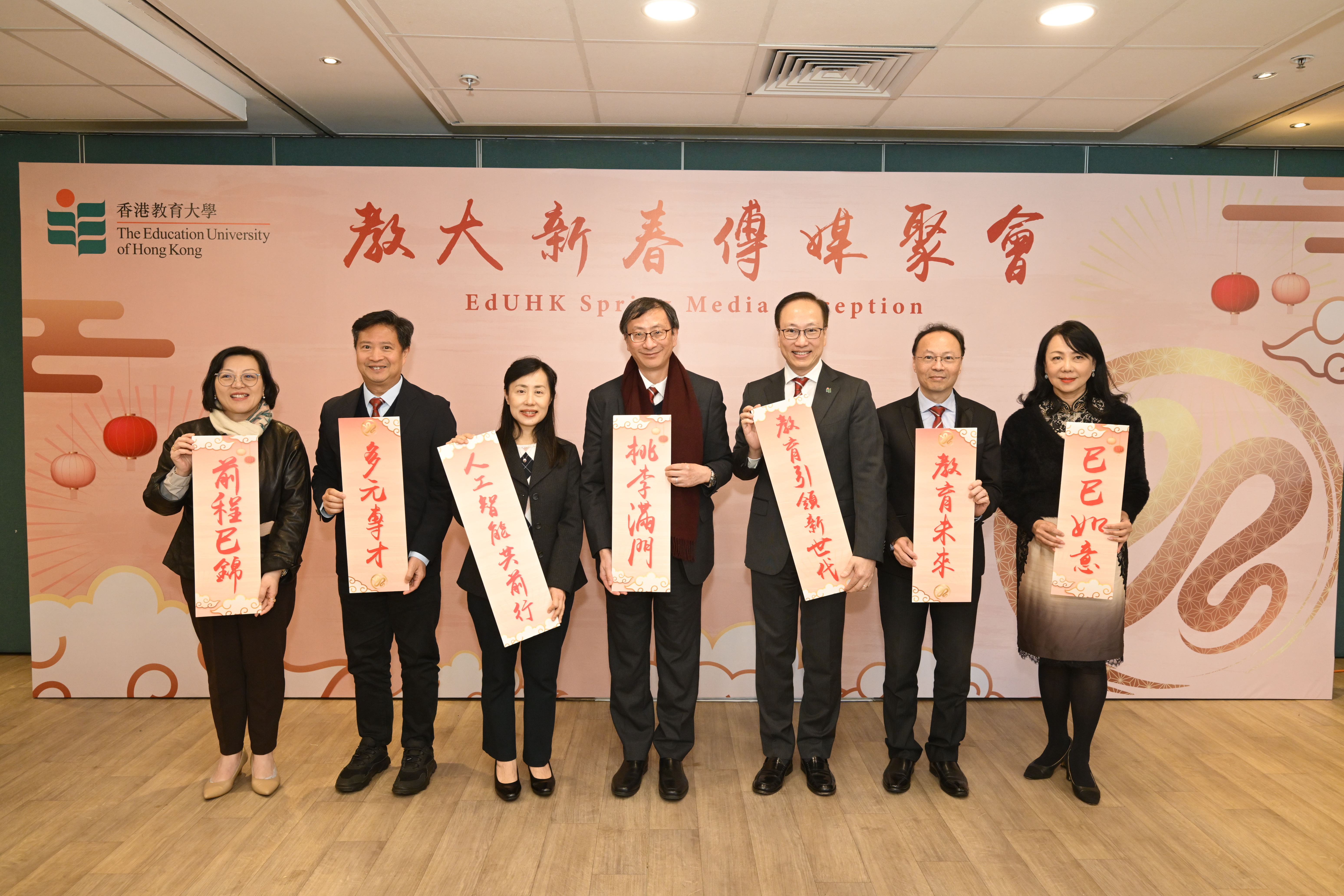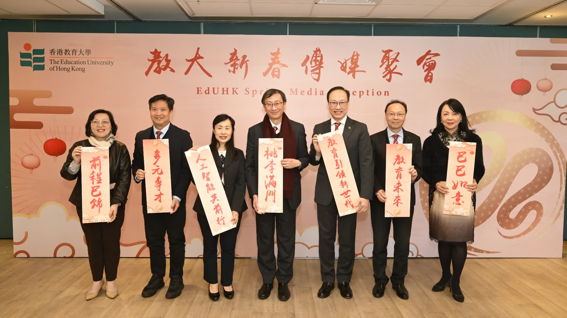 香港教育大學(教大)今日(2 月20日)舉辦新春傳媒聚會,校長李子建教授、副校長(學術)鄭美紅教授、副校長(研究與發展)陳智軒教授和副校長(行政)方永豪博士,以及一眾學校管理層,向傳媒介紹大學在人工智能教育方面的最新進展、新學年課程改革及學士、碩士課程的新方向等,並回答了記者關心的一些熱點問題。