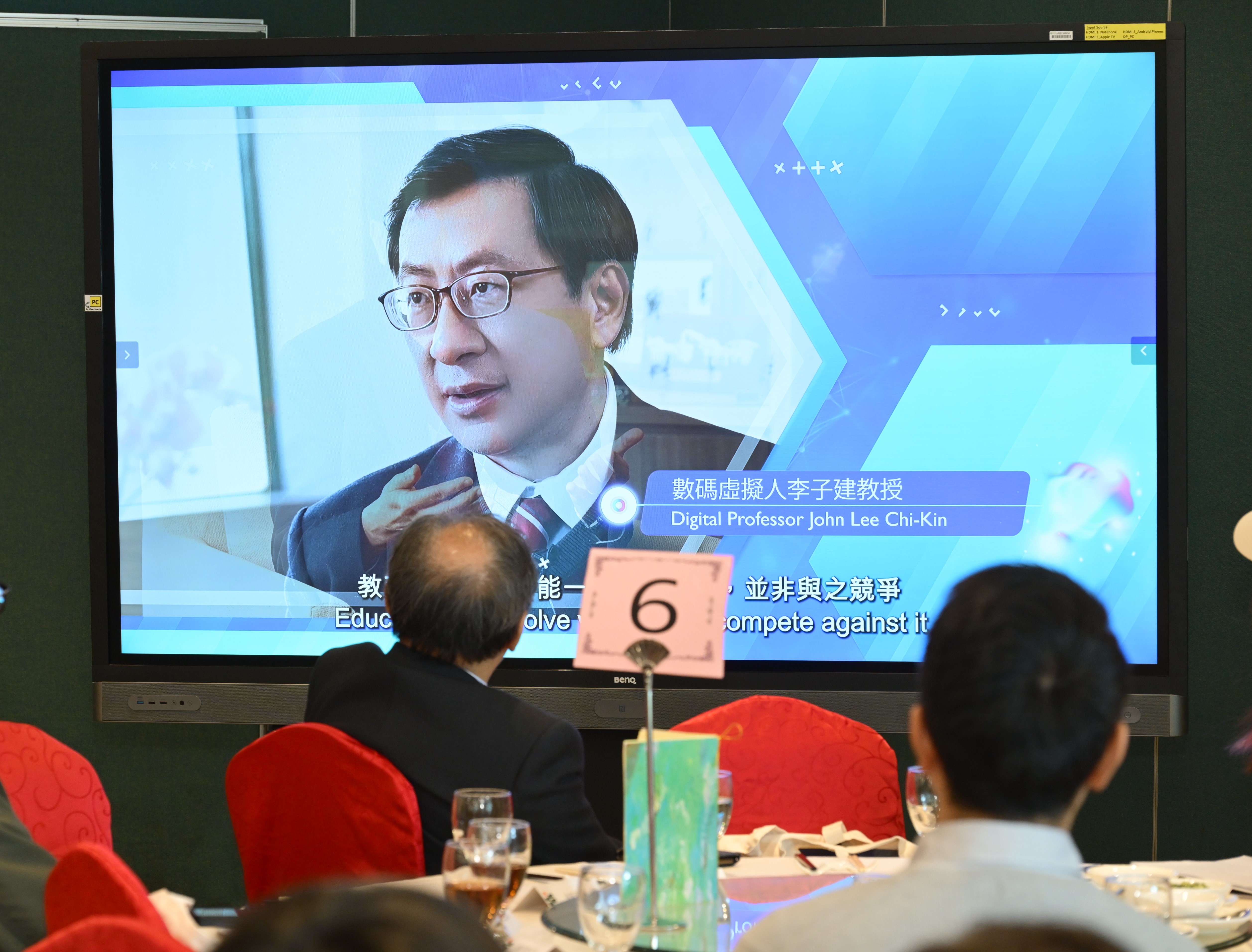 茶聚上播放了一條精華短片,以教大14位專家學者的訪談集萃介紹了大學將人工智能運用於教育方面的探索與實踐進展。學者專家們的精彩觀點及研究成果,表明教大對於人工智能發展與應用的高度重視,不僅展現了AI工具和平台如何賦能教與學的體驗,更顯示了教大在人工智能與教育融合方面的領先優勢與引領角色。