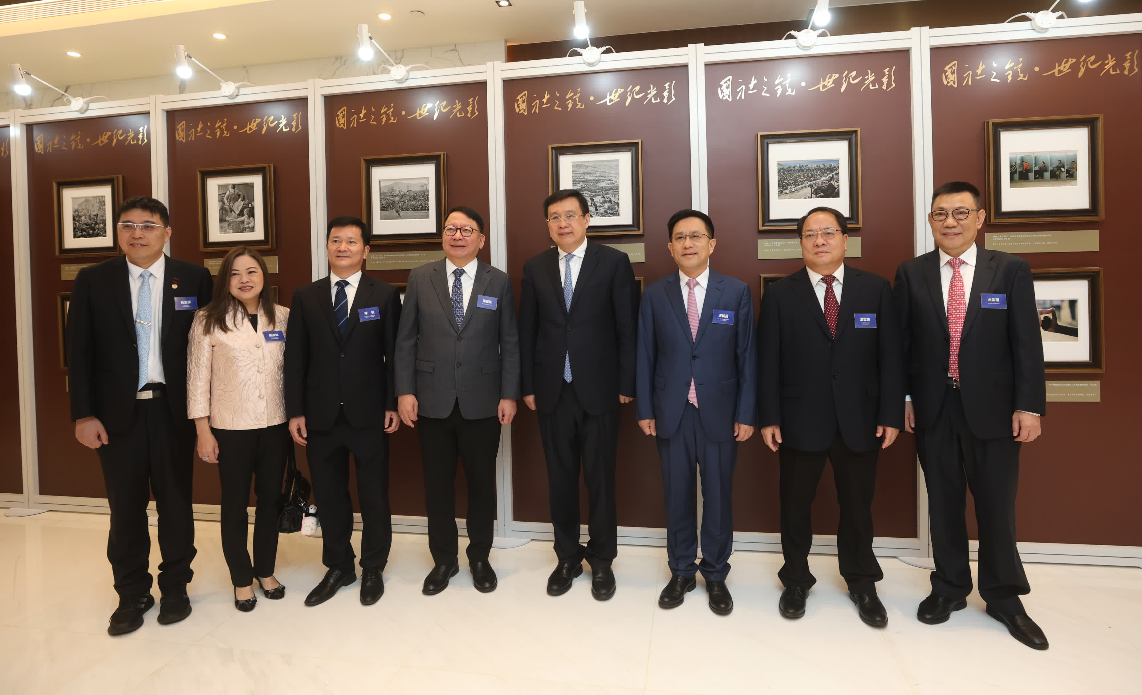 同日,「國社之鏡·世紀光影」新華社新聞攝影展在香港舉行。這些新華社攝影精品生動展現了新中國成立以來的歷史變遷和偉大成就。開通儀式後,嘉賓們共同參觀了攝影展。