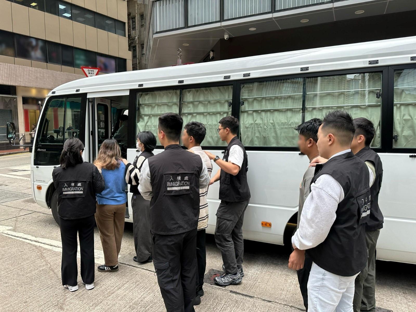 反非法勞工行動中,入境處特遣隊人員搜查了9個目標地點,包括裝修中單位和餐廳。被捕的懷疑非法勞工為5男3女,年齡介乎27至53歲。其中1名女子同時涉嫌行使及管有懷疑偽造身份證。因涉嫌聘用非法勞工被捕的僱主為2男1女,年齡介乎44至61歲。因涉嫌協助及教唆他人在港違反逗留條件而被捕的則為1名63歲男子。