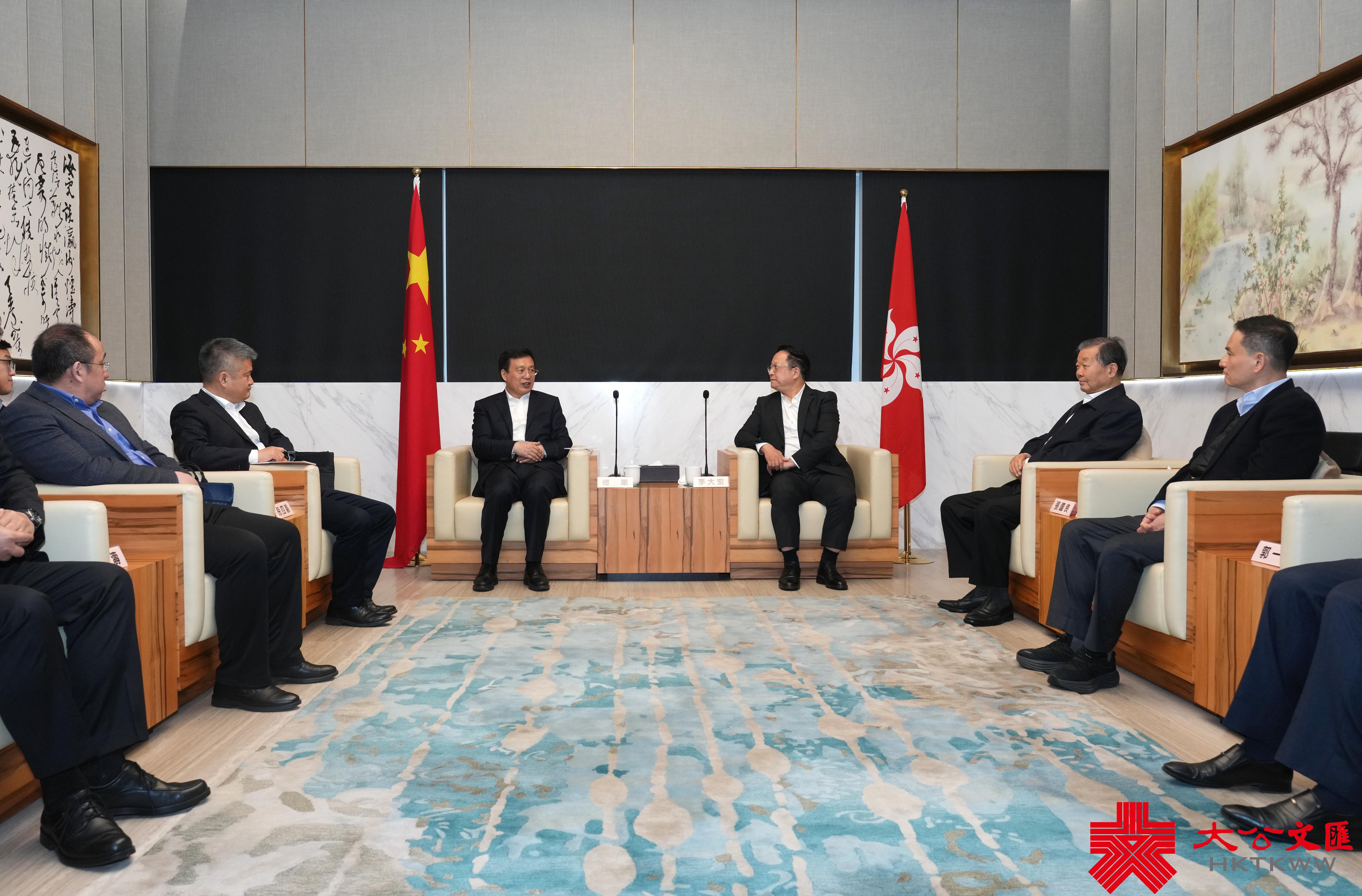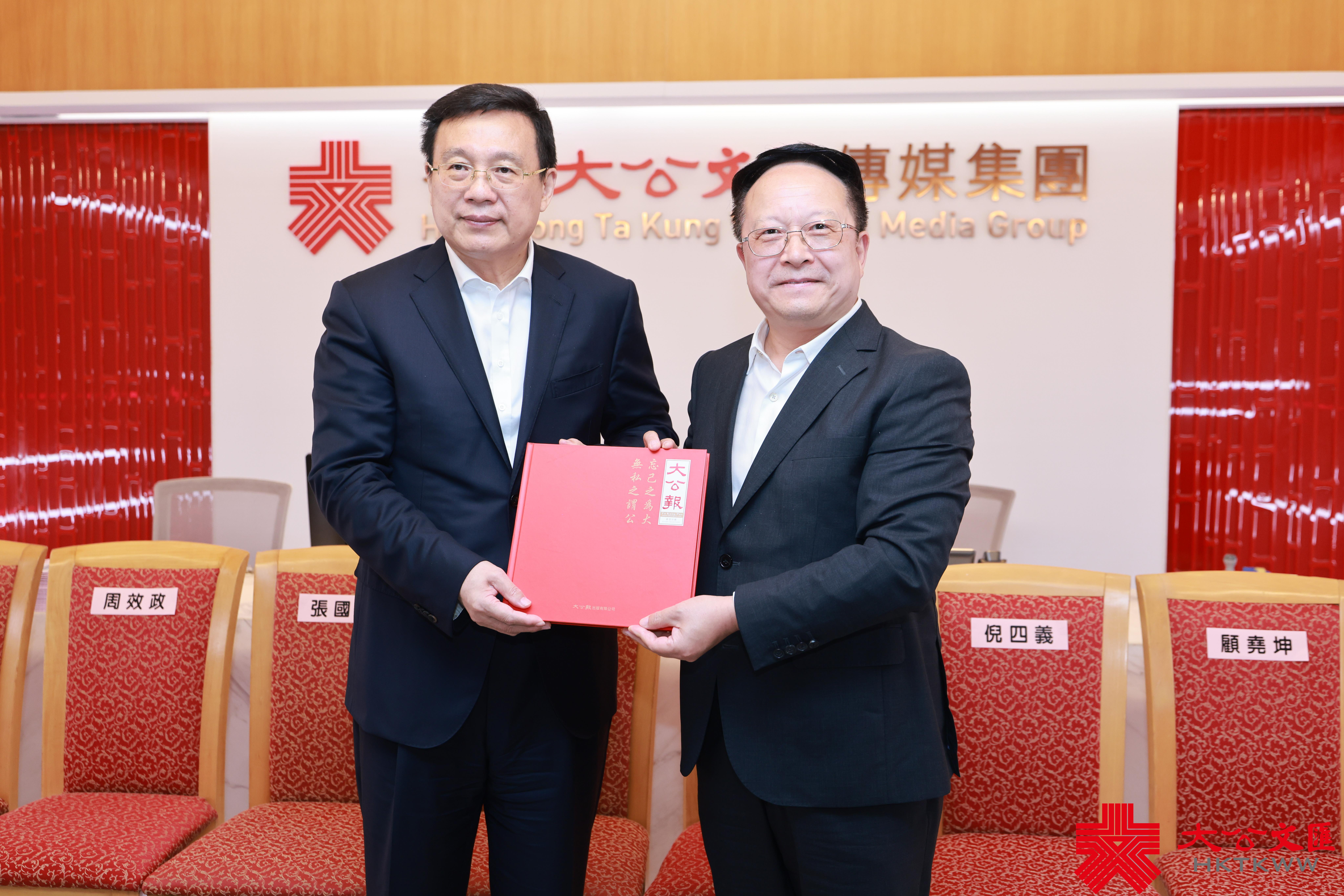 大公文匯網報道,2月21日,新華通訊社社長傅華會見大文集團董事長李大宏並與香港新聞工作者聯會會員代表座談,李大宏歡迎傅華一行到來,陪同參觀集團報史舘、全媒體新聞中心,雙方就進一步深化合作達成廣泛共識。