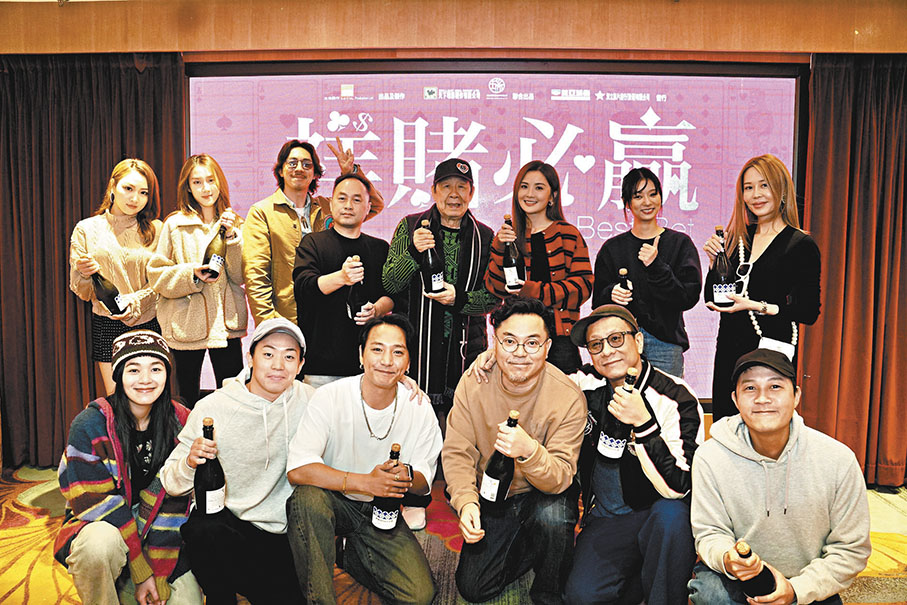 (香港文匯報記者 阿祖)賀歲片《祥賭必贏》日前舉行感謝宴,導演羅耀輝、張繼聰(阿聰)、蔡卓妍(阿Sa)、胡楓(修哥)、朱栢康(朱康)、岑珈其、吳家忻(Kayan)、林耀聲、麥子樂及許月湘等出席,席上大家開香檳慶祝之餘,阿聰、阿Sa 與修哥還逐枱敬酒,充滿喜慶歡樂氣氛。阿Sa更集氣向監製伍健雄爭取開續集,監製有求必應,考慮原班人馬再開新戲,全場掌聲和應,阿 Sa希望大家長做長有,日日有工開,電影圈早日結束寒冬期。