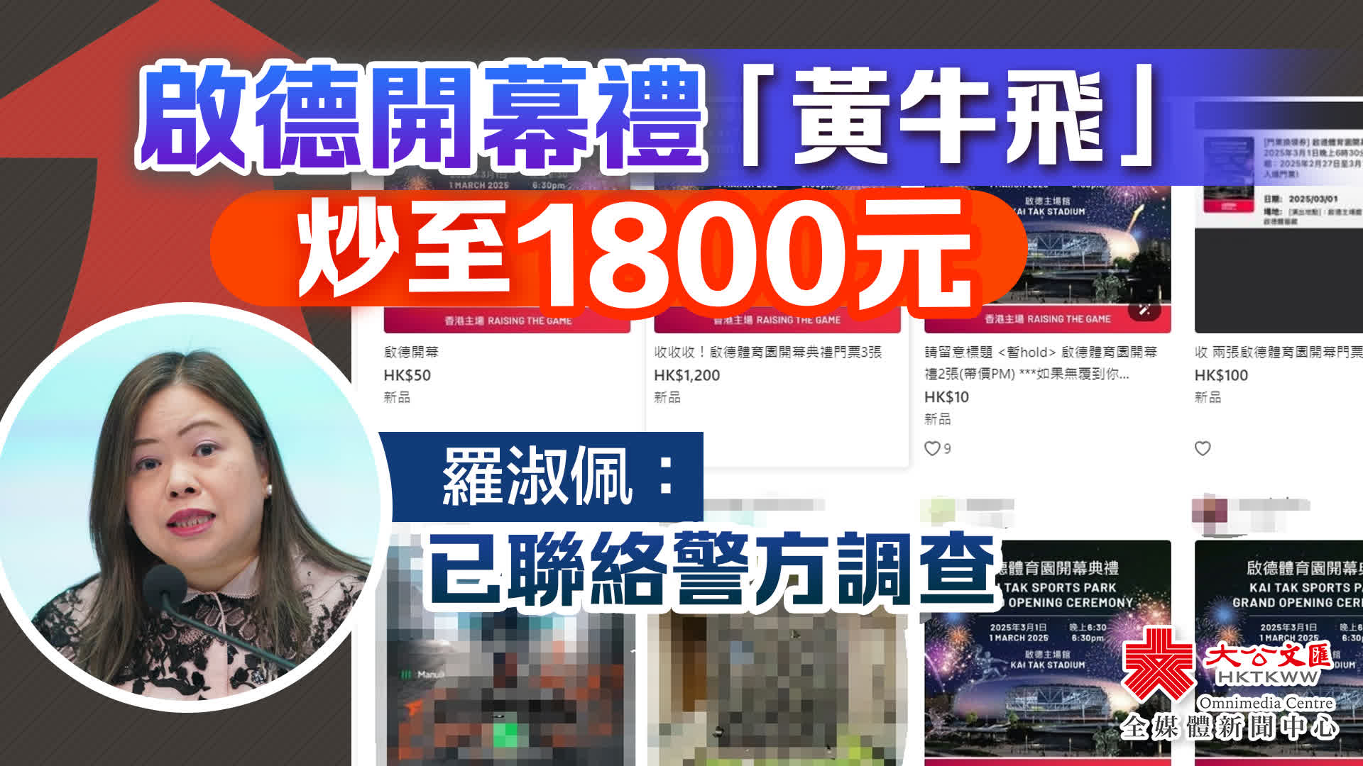 大公文匯全媒體報道,啟德體育園將於下星期六(3月1日)開幕,門票供不應求,雖然今次售票安排採取實名制,網上預訂需提交英文姓名,取票時需出示身份證明文件,但昨日(21日)中午時分仍然湧現「黃牛黨」。網上的各個交易平台,陸續出現「放票」、「求票」等帖文,部分價格炒至每張門票數百元,最誇張的售1800元。對此,文化體育及旅遊局局長羅淑佩今日(22日)呼籲市民小心防騙,局方已與警方聯絡,會對炒賣門票情況有行動,但無透露細節。