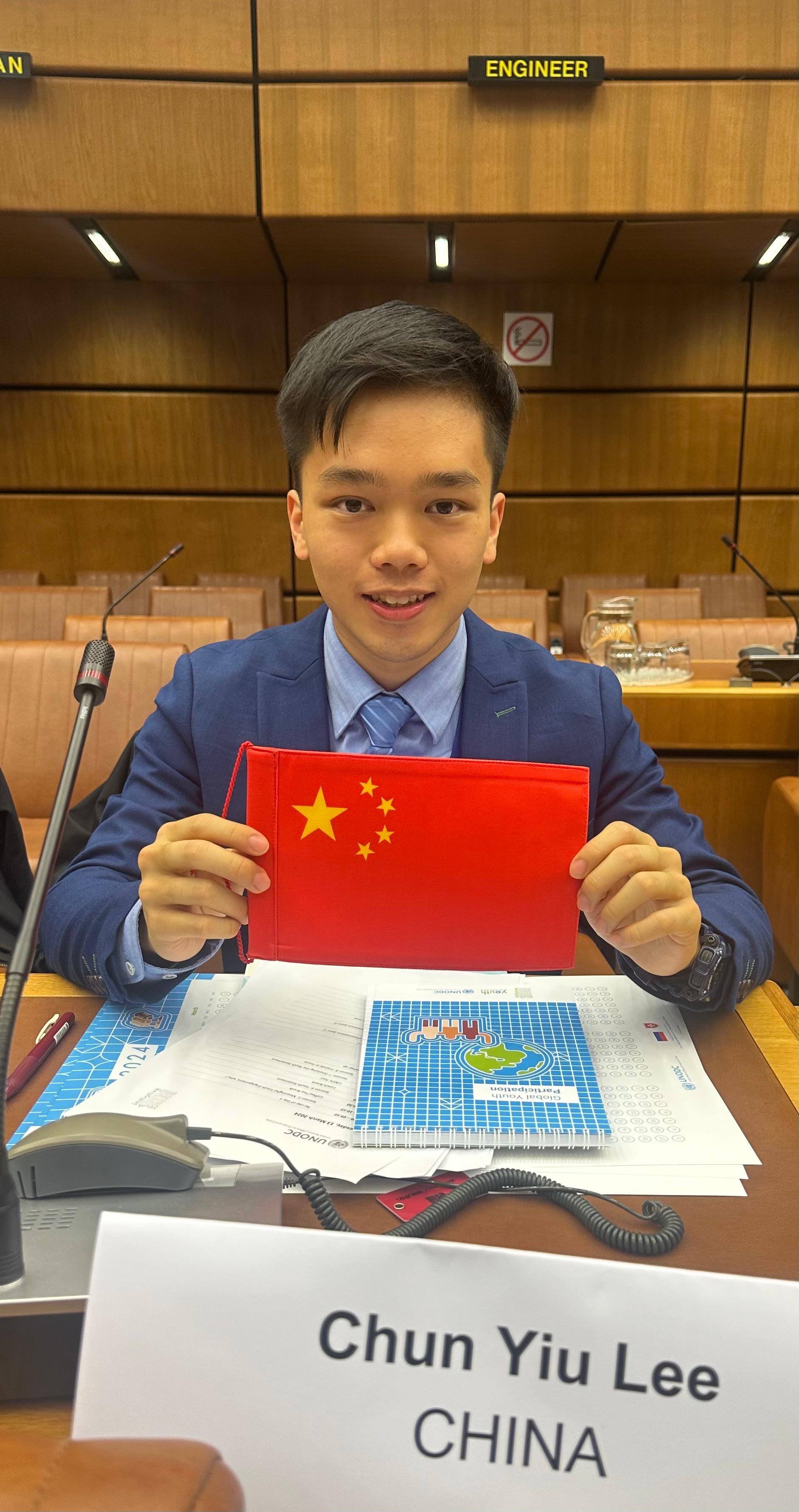 獲獎者李駿耀於去年3月參加了「聯合國毒品及犯罪問題辦公室2024年度⻘年論壇」,並以唯一中國青年代表的身份上台演說,介紹香港抗毒工作,充分感受到了青年的使命和角色。他表示在過程中自己慢慢找到了個人目標,希望將來能加入政府工作,了解更多政策制定的考量過程。