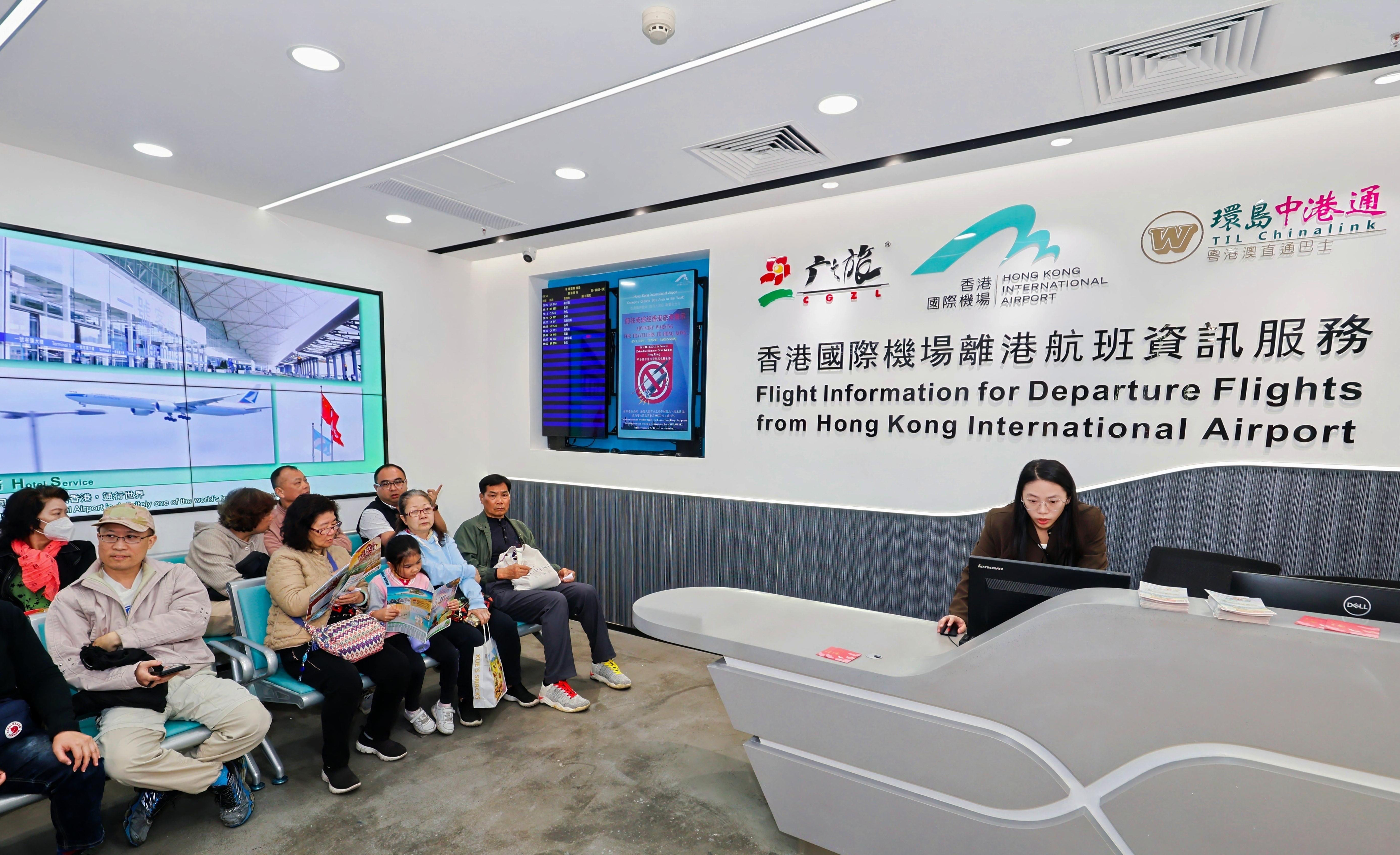 「在香港國際機場廣州賓館城市候機樓,設有電子顯示屏與香港國際機場系統實時連接,當天的系列航班信息一目了然。」廣州居民吳麗清告訴記者,到了城市候機樓就好像到了香港機場一樣,除了便捷地查詢到即時或目標航班的相關信息外,手持出行所需護照,即可用自助機提前辦理值機手續、選擇航班座位等,並現場打印登機牌,隨後即可從廣州乘車直達香港機場登機。據悉,目前從廣州賓館城市候機樓出發的直通跨境巴士,平均不到1小時一班,每日達18班次;返程平均每半小時一班,每日可高達32班至33班。