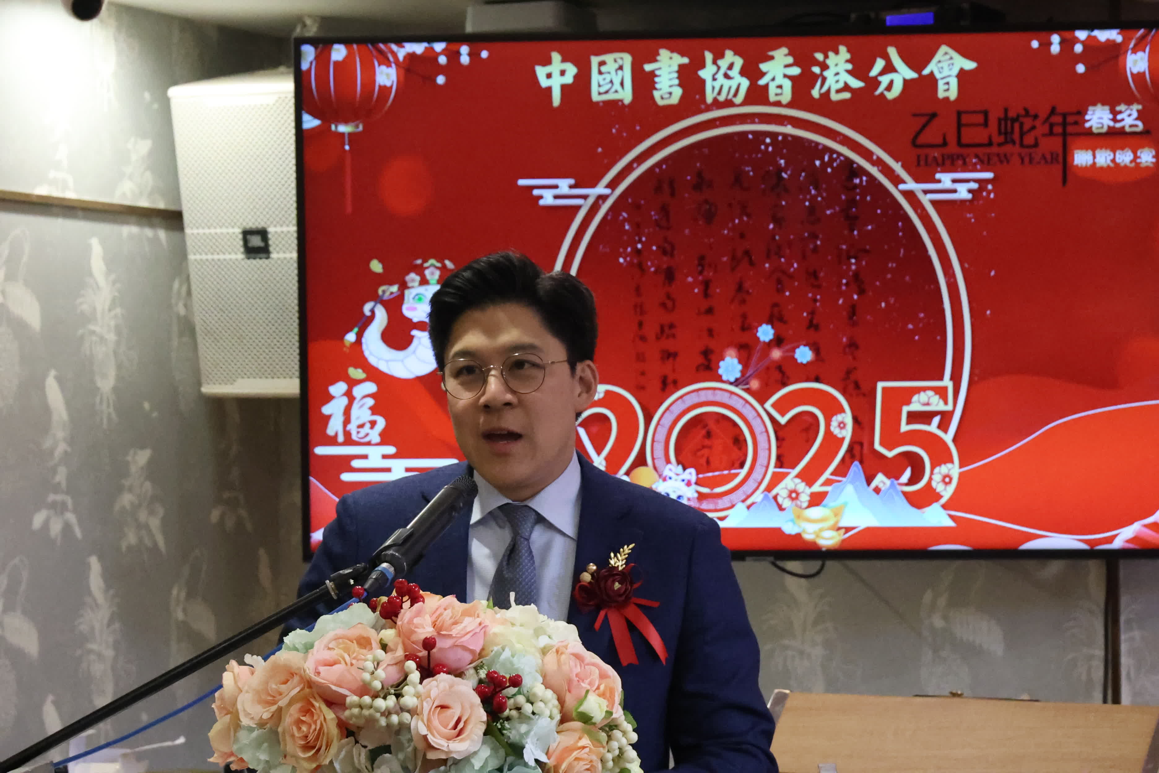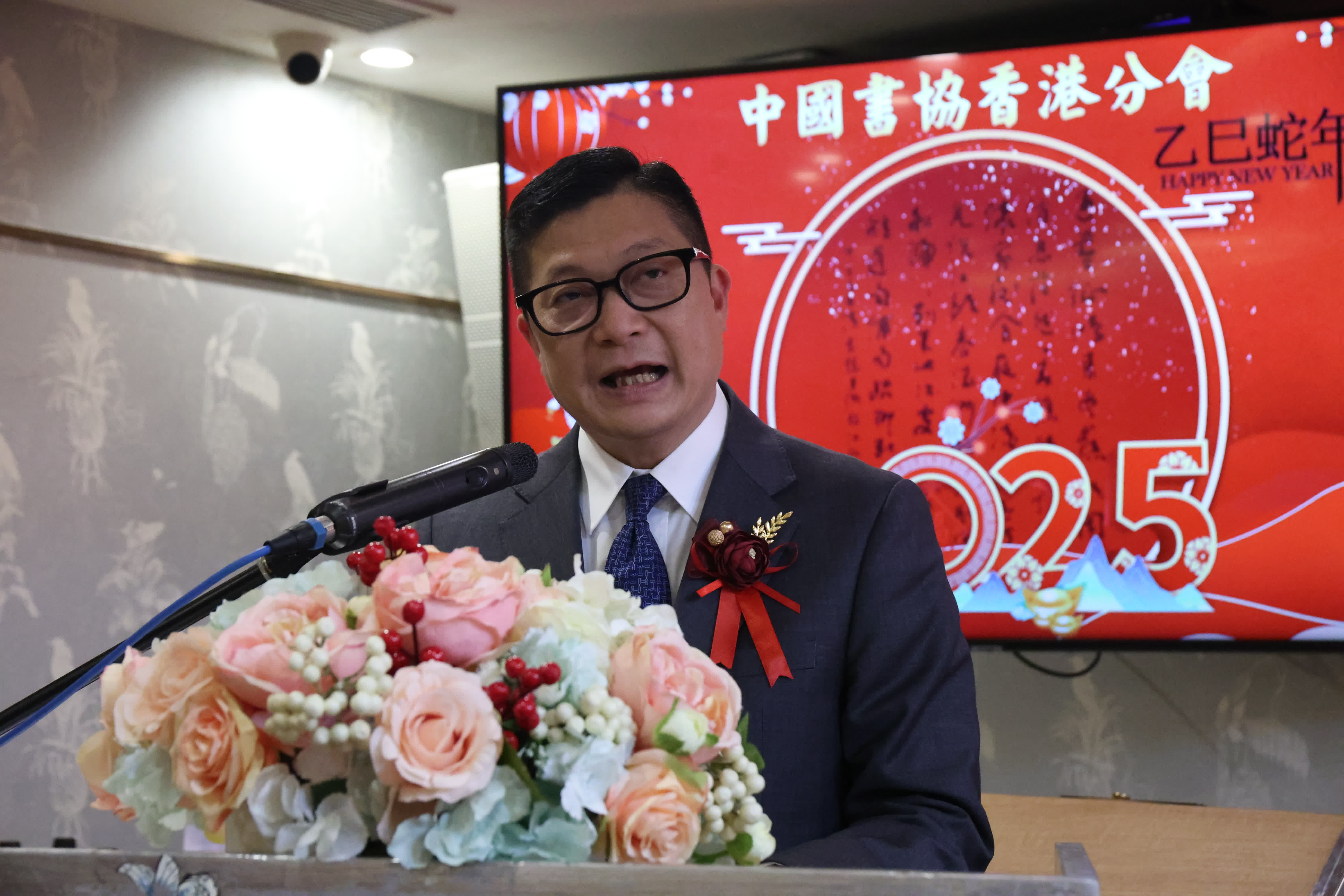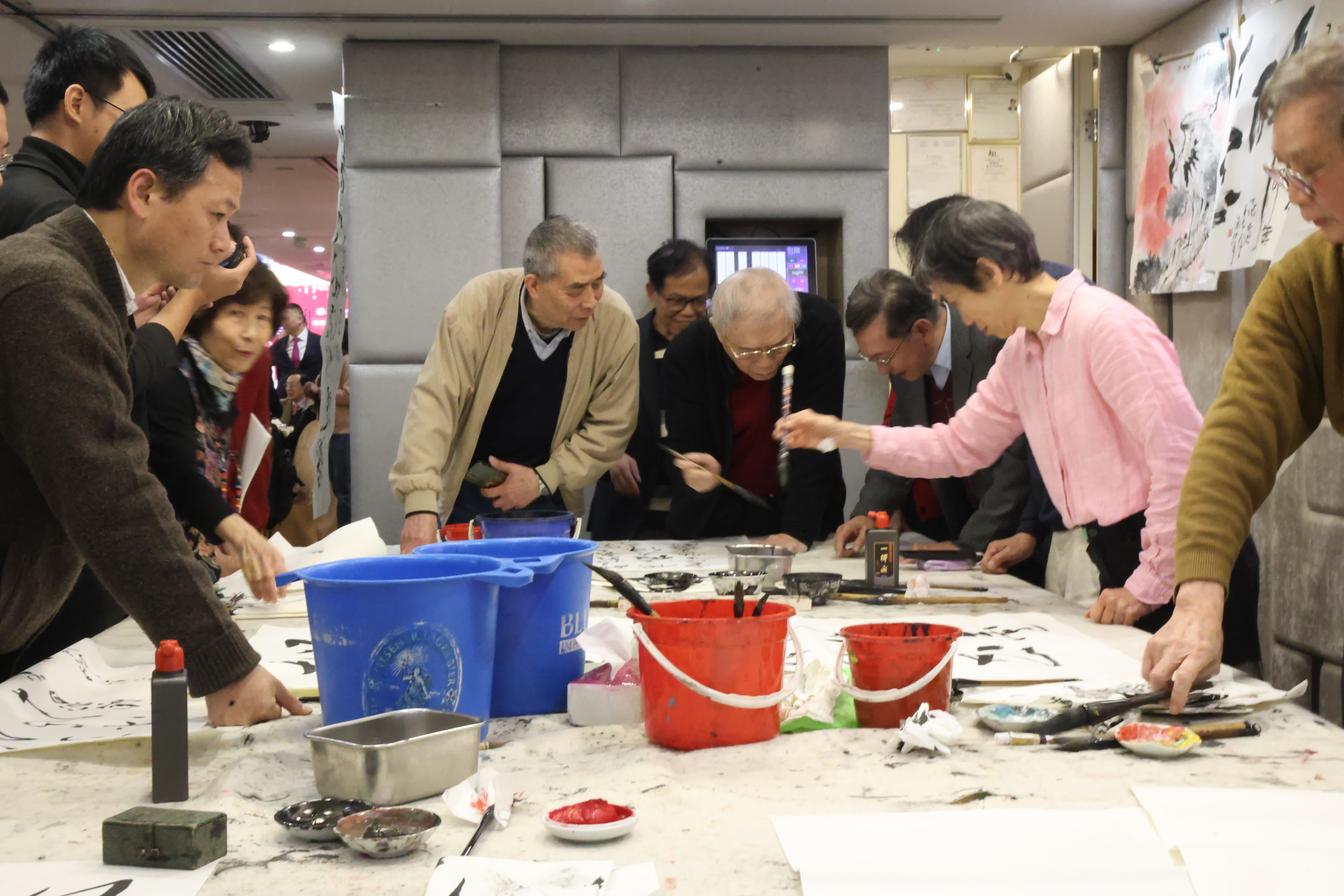 (香港文匯報 記者 子京)中國書協香港分會今日(24日)舉辦2025年春茗聯歡活動,活動以雅集和晚宴形式舉行,不少書法藝術家即場揮毫,書畫作品掛滿牆上,場內筆墨飄香,文化氣氛濃厚。來自政商界、文化界、藝術界、傳媒界等社會各界嘉賓出席晚宴,歡慶蛇年新春,共話文化傳承。
