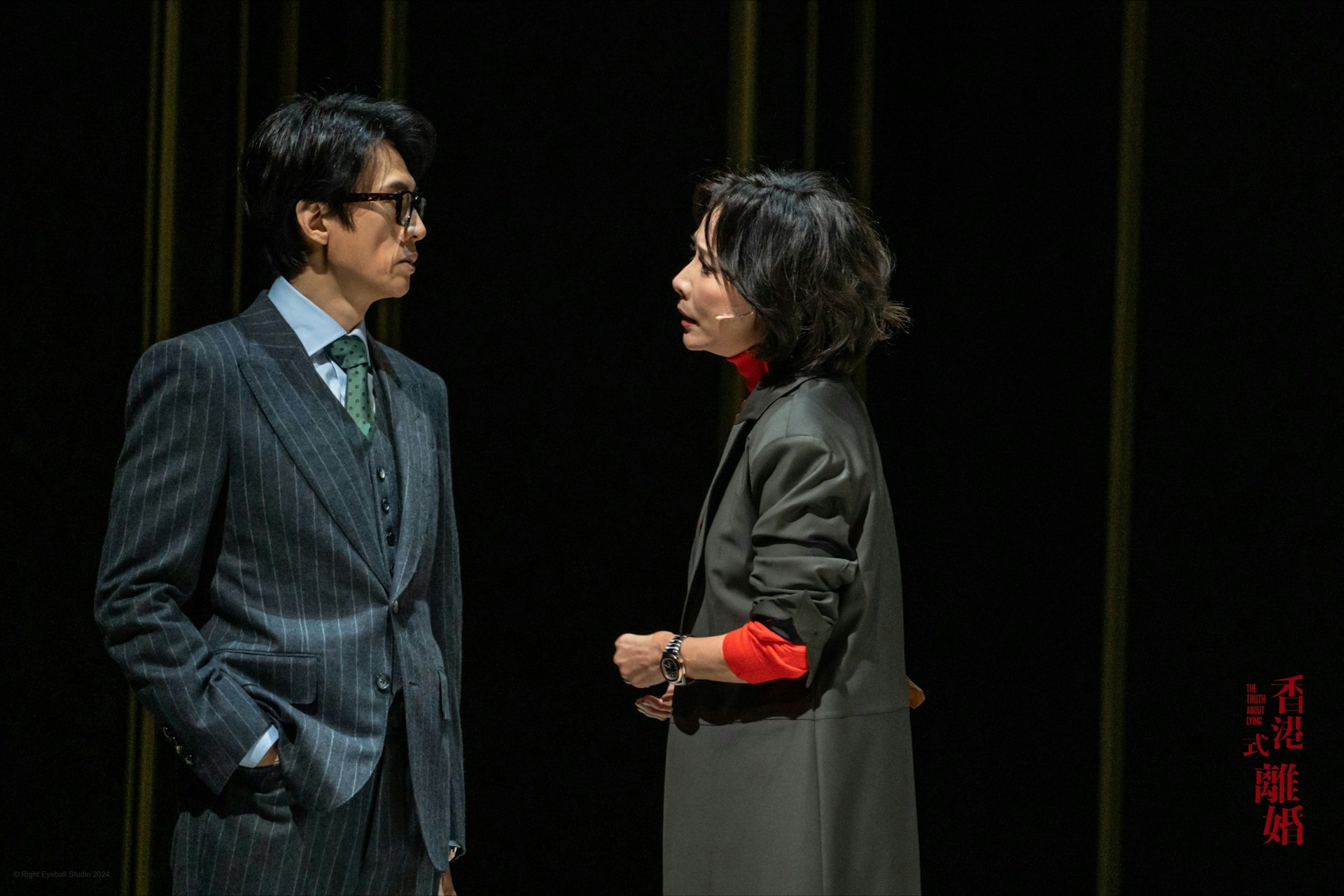 劉嘉玲聞言後驚訝不已,即擁着子華道謝。子華指嘉玲為了這次演出,付出了極大心力,令人敬佩,不僅節食減8磅,還刻意限制自己少飲酒,他說:「我哋幾個演員,個個都病過,除咗佢。」子華笑說每晚演出後,演員們聚在他的休息室喝威士忌,但酒量比他強數倍的劉嘉玲,為保持最佳演出狀態,都忍住只淺嘗幾口。