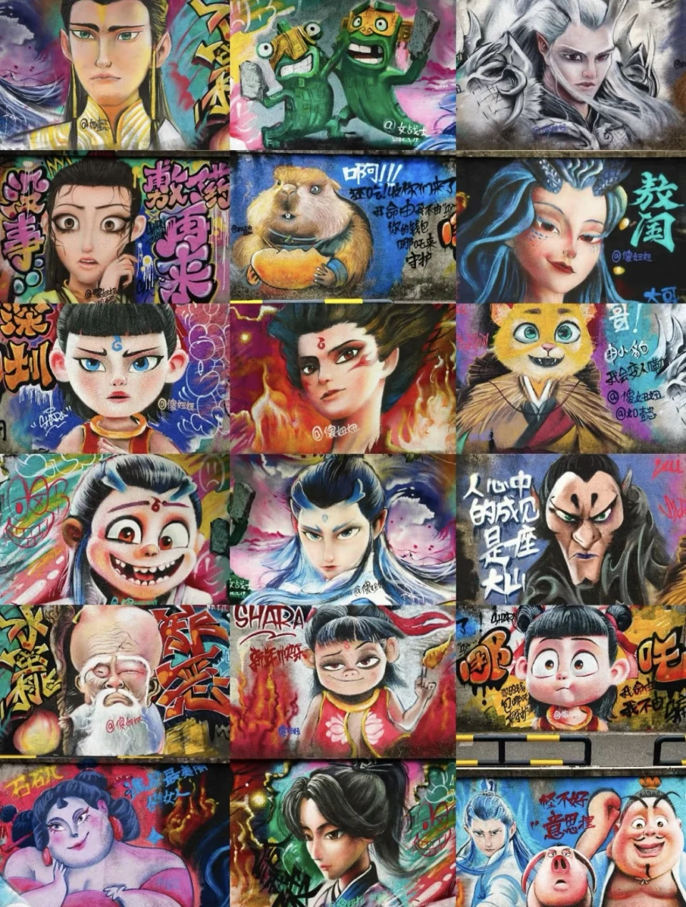 哪吒壁畫打卡牆位於深圳龍華區上芬社區西頭瓜地新村,由3位女影迷花了3天時間共同完成。壁畫高約2米、闊約20米,上載有10多位人物角色,包括哪吒、敖丙、太乙真人、申公豹、石磯娘娘、西海龍王、申小豹等。繪畫師於社交平台表示,團隊每天花4小时製作壁畫,單是畫一個主角已花上2小时。