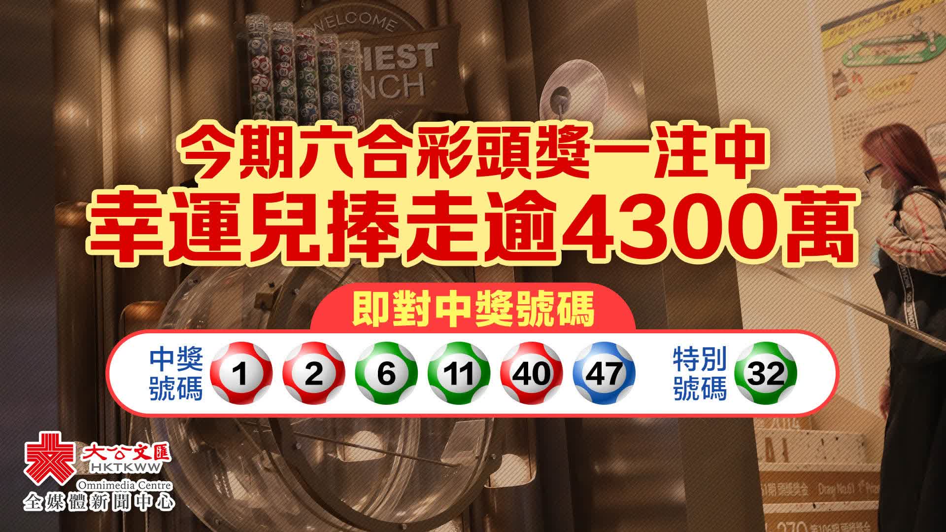 今晚攪出的中獎號碼: 1、2、6、11、40、47 特別號碼:32