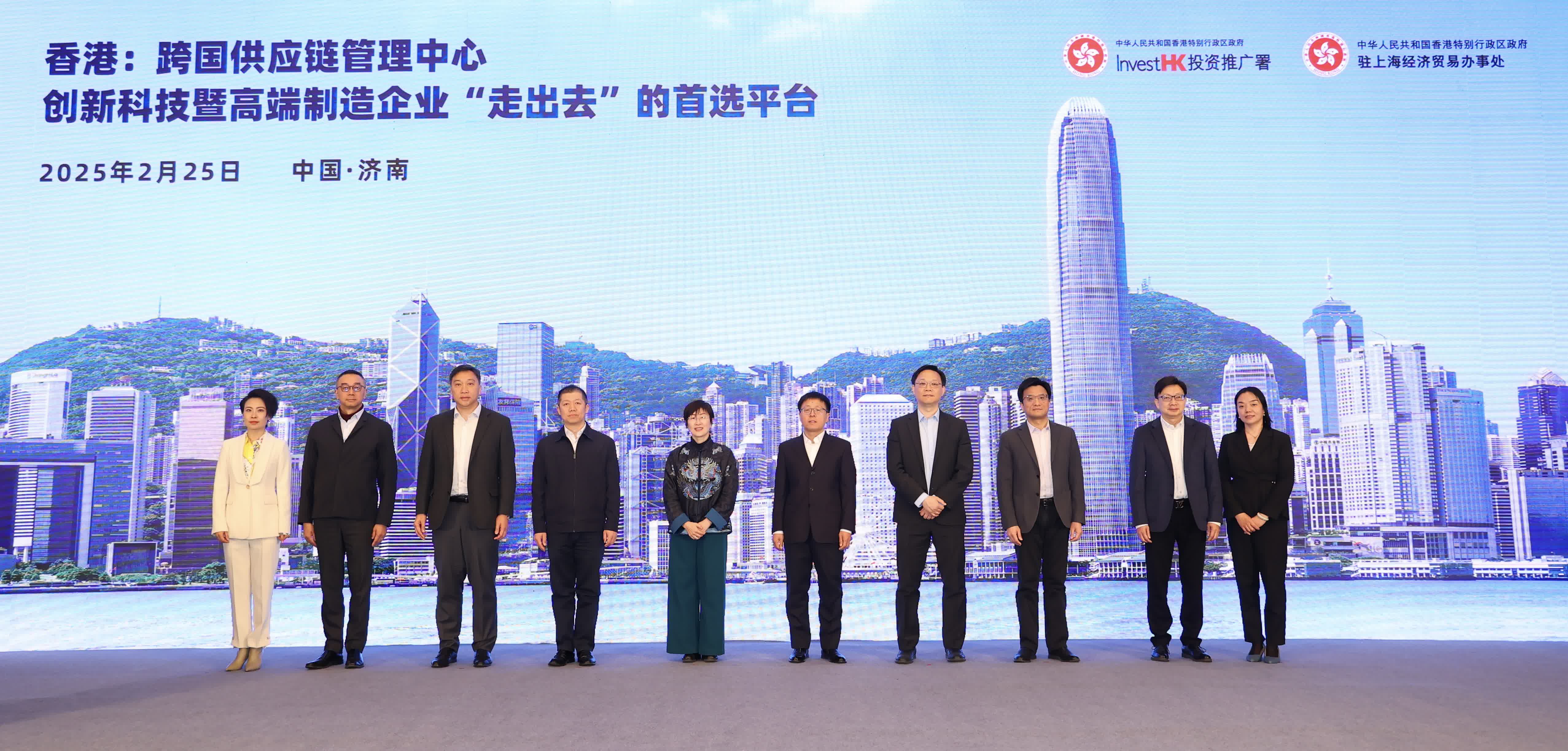 「香港積極融入國家發展大局,憑藉國際化的營商環境、卓越的金融實力和多元化的專業服務,致力於打造跨國供應鏈管理中心,已成為內地創新科技和高端製造企業『走出去』的首選平台。」蔡亮在致辭時表示,香港特區政府駐上海經濟貿易辦事處將全力推廣香港在「一國兩制」下的獨特優勢,積極促進香港與山東、香港與濟南各領域的全方位合作,助力企業赴港發展,進一步開拓「一帶一路」及沿線國家和地區市場。