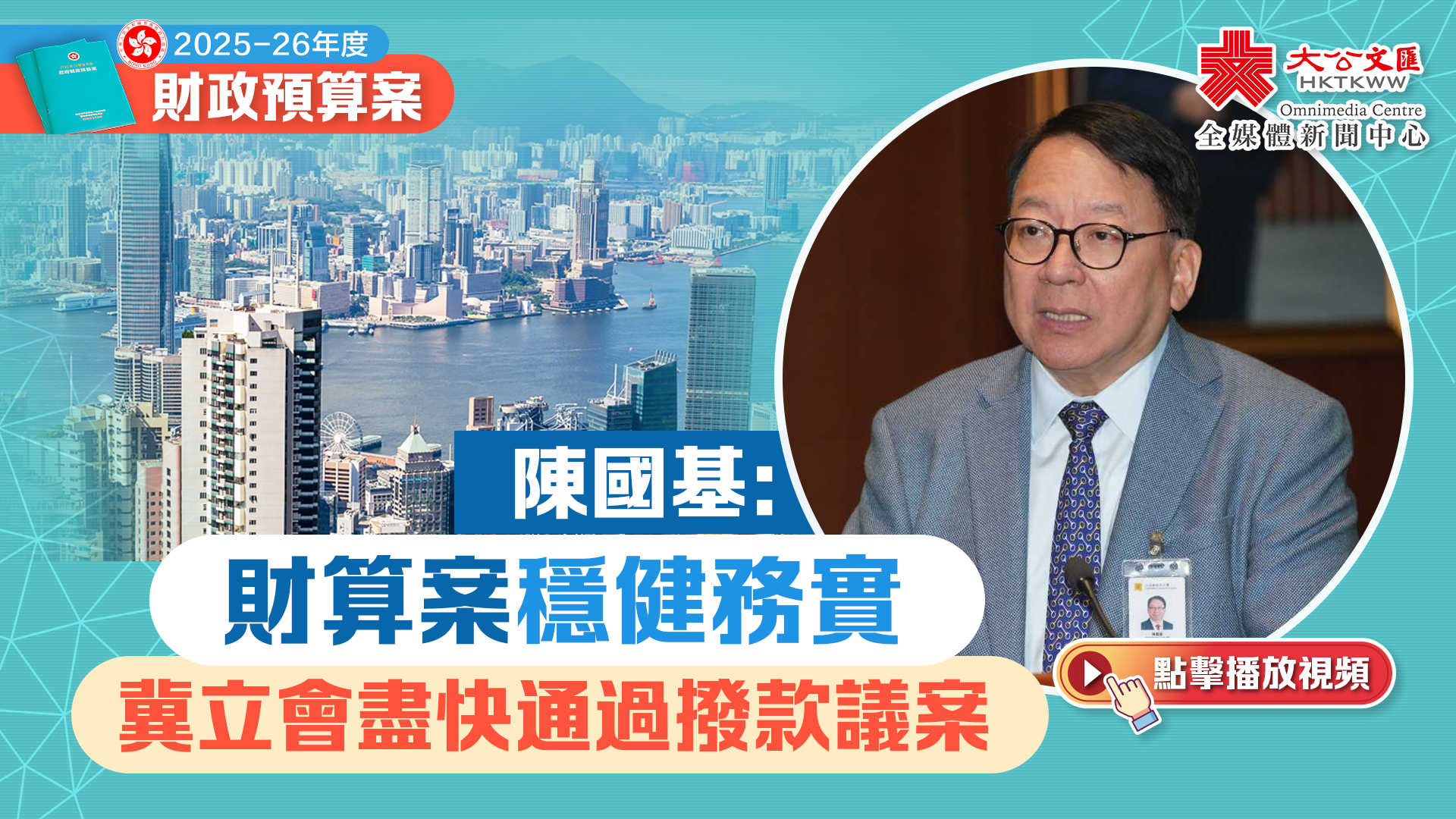 陳國基指出,預算案有幾個重點值得留意。第一,全面配合國家加快發展新質生產力的戰略,更好融入國家發展大局。財政預算案是策略性投放資源,推動人工智能作為關鍵產業,透過科技賦能、產業發展、積極培育生命健康科技等新興產業,致力將香港建設為國際創新科技中心,特別是透過河套合作區發展,加速發展新興產業,增強競爭力,實現經濟結構多元化;第二,鞏固傳統優勢,提速發展。在「一國兩制」之下,香港擁有「背靠祖國、聯通世界」的獨特優勢,是連接全球的超級聯繫人、超級增值人,財政預算案提出多項措施,把握「三中心一高地」,即國際金融、航運、貿易中心,以及國際高端人才集聚高地這個戰略定位,鞏固提升優勢的產業,以及加強同大灣區城市聯動,全方位吸引更多海內外企業落戶香港,同時都積極深化同東南亞、中東等新興市場合作,開拓新市場,匯聚全球企業、資金及人才,為香港經濟注入新動力;第三,強化財政整合計劃。面對公共財政壓力,財政預算案透過節流、善用政府財政資源以及開源,秉承謹慎理財原則,推出不同措施,嚴格控制開支增長,同時亦都維持高水平公共服務,以確保香港競爭優勢不受影響,開源措施亦都盡量體現用者自付,以及能者多付的原則,盡量減低對一般市民的影響,秉承維持公共財政穩健,推動發展,投資未來。