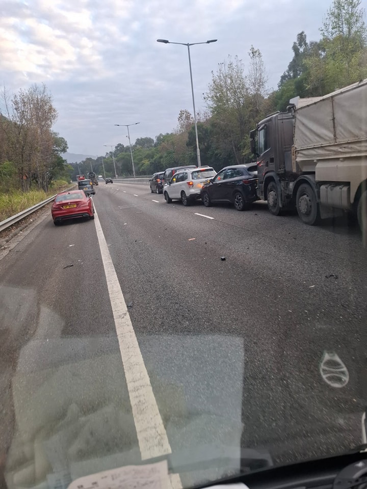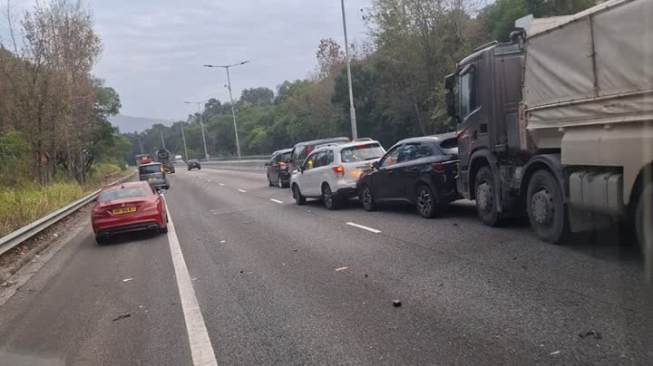 運輸署宣布受交通意外影響,元朗公路(往上水方向)近十八鄉交匯處的部分行車線現已封閉,駕駛人士只可使用餘下行車線行車,現時上址交通繁忙。