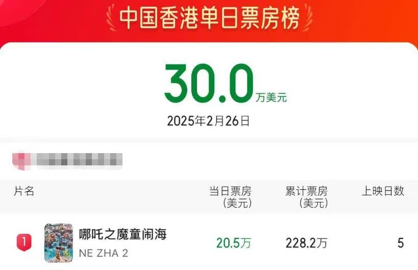 關鍵詞:哪吒2香港票房榜