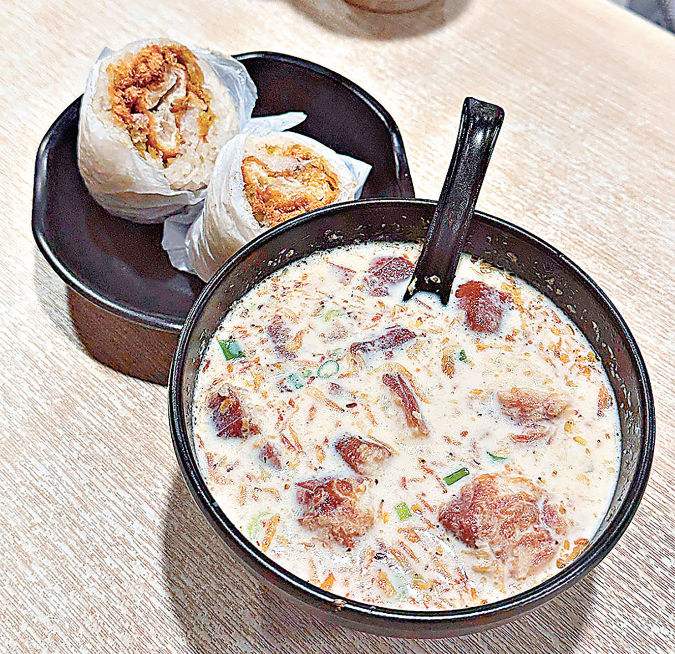 獲米芝蓮推薦的「豆漿大王」,主打傳統中式早點,人均不到50元就能享受正宗江浙滬滋味。必點「鹹豆漿」(20元),豆香濃郁的熱豆漿加入麻油、豉油、蝦米、榨菜與油炸鬼,口感層次豐富。此外,招牌正宗上海「鹹粢飯」也是每枱必點,以糯米包裹酥脆的炸油鬼、肉鬆及榨菜,外軟內脆,鹹甜交織的搭配讓人慾罷不能。店家從清晨營業至晚間,無論是作為看演唱會前的正餐,或是深夜活動後的消夜,都能在此找到暖心選擇。