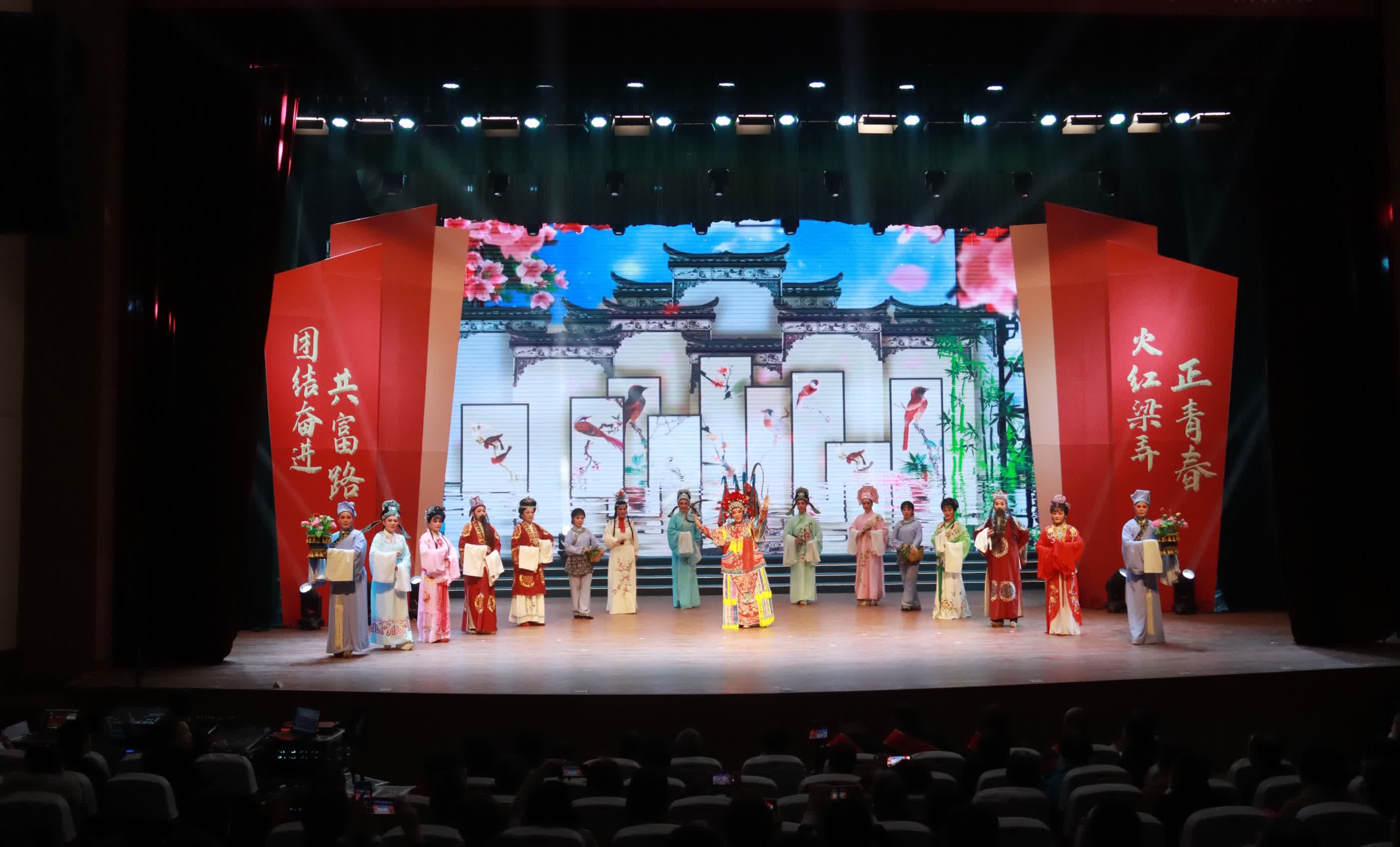 傍晚,梁弄鎮文化廣場劇院座無虛席,一場迎新年專場文藝晚會在這裏上演,火紅梁弄藝術團帶來的姚劇《大美梁弄》,讓村民再次領略本土文化的魅力