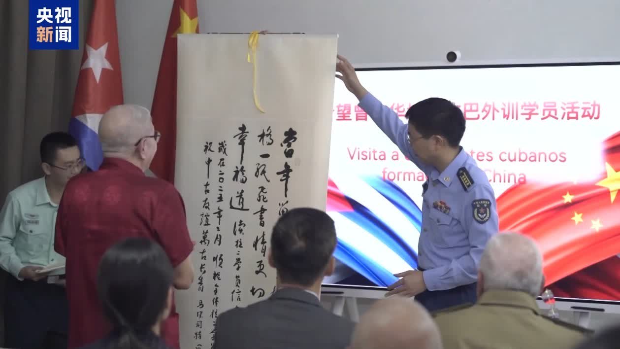 中國空軍特地為古巴學員準備了書法作品和主戰裝備紀念相框等禮物。