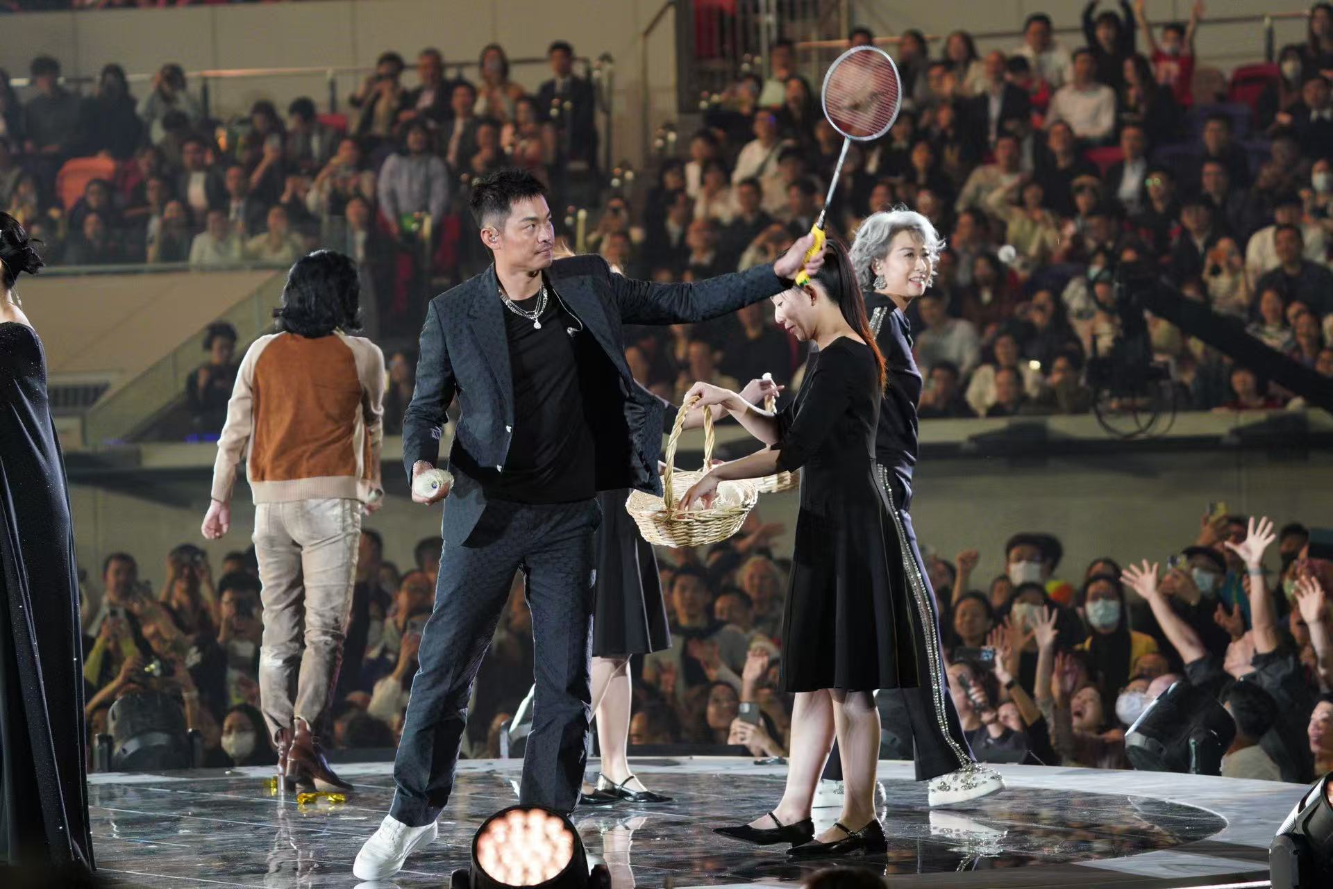 典禮穿插多場互動環節,掀起陣陣高潮。嘉賓們以發球形式將簽名羽毛球拋向觀眾席,引發全場歡呼。觀眾高舉雙手躍躍欲試,爭相搶奪這份獨一無二的紀念品。