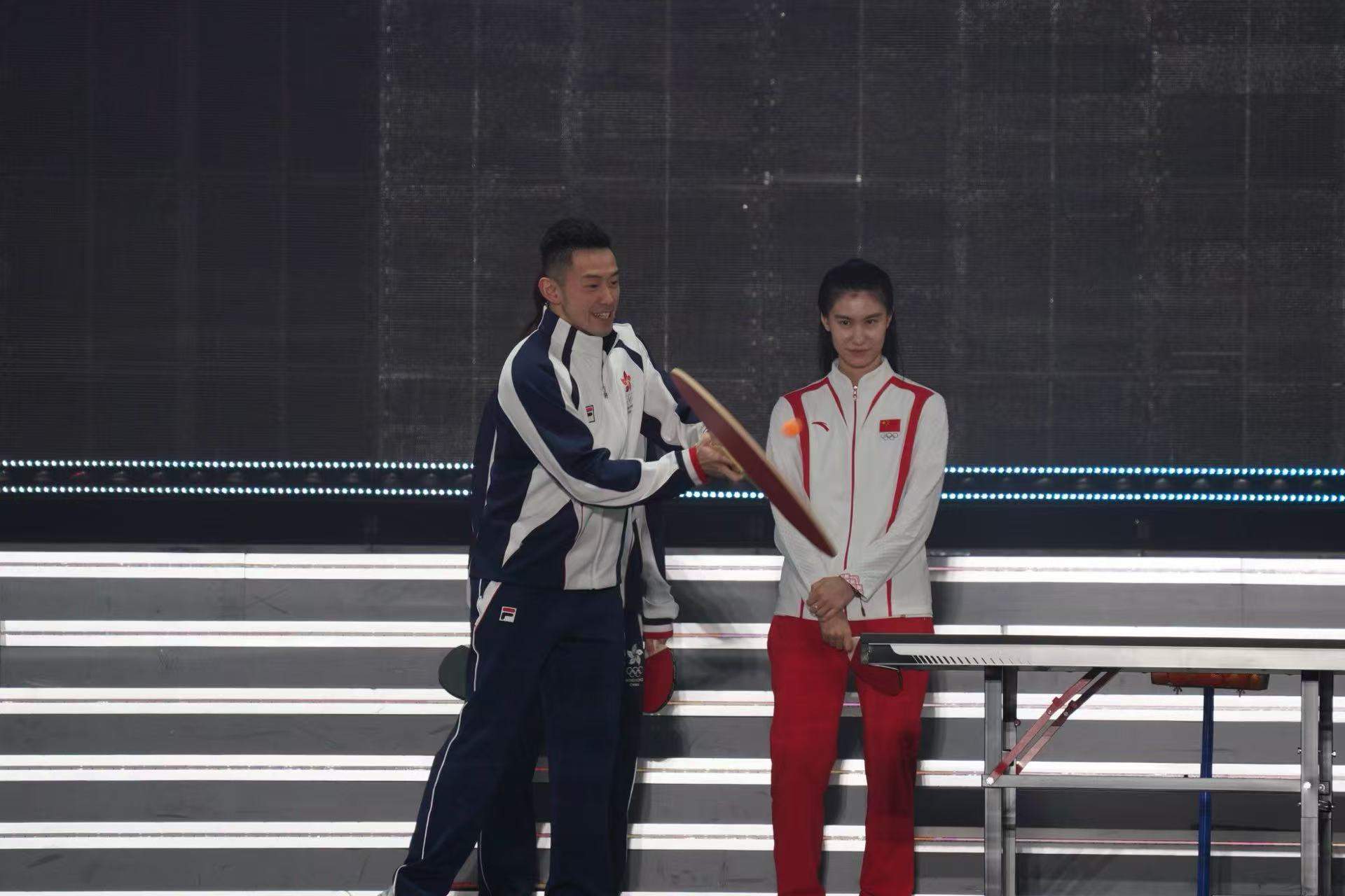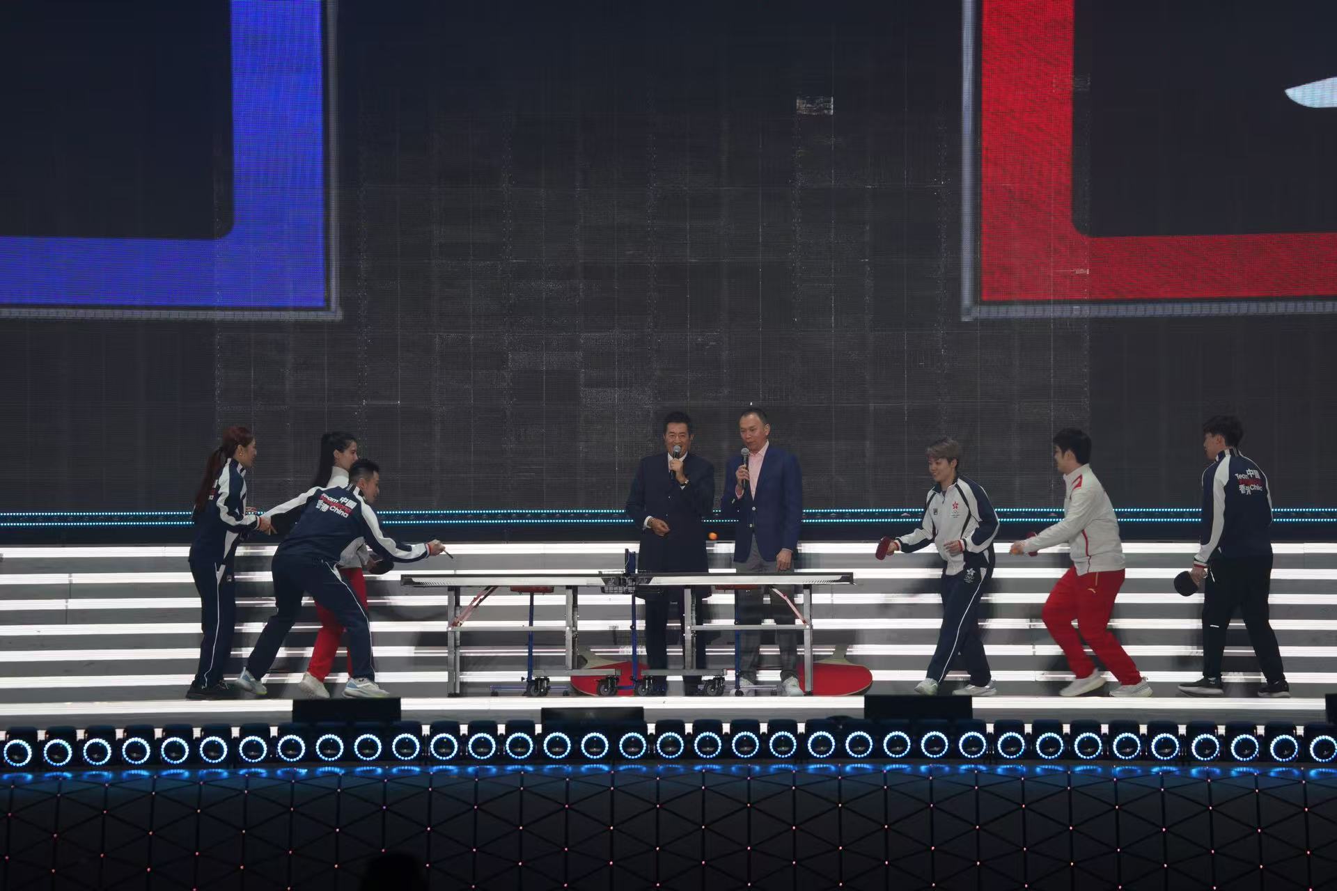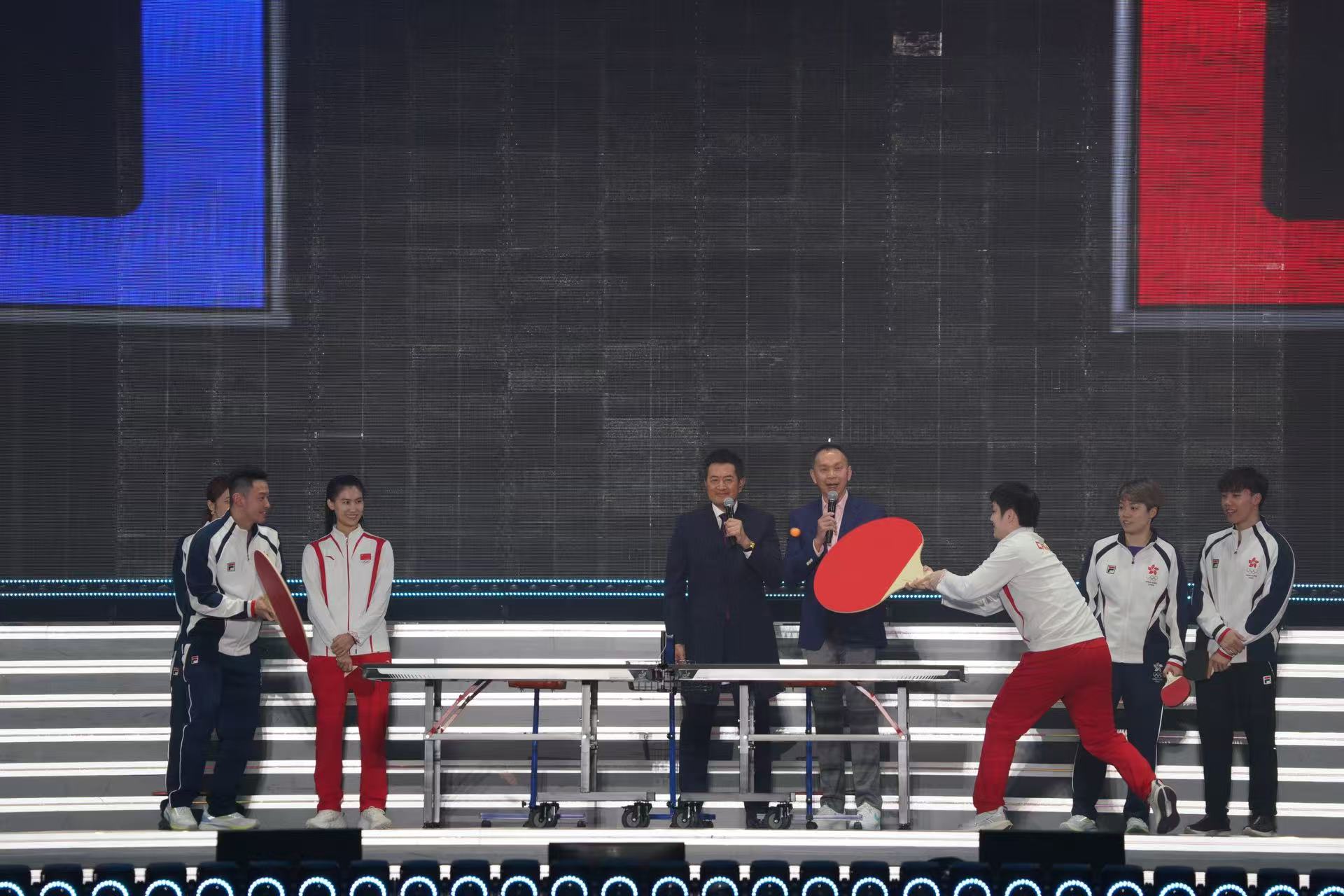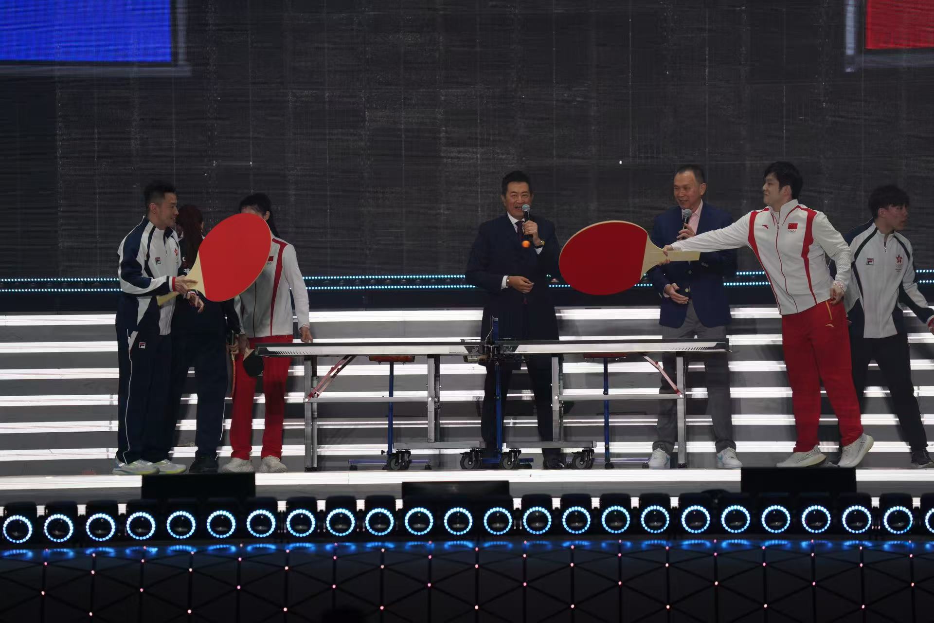 樊振東與港隊代表港隊名將杜凱琹、黃鎮廷、朱成竹等,以巨型球拍進行「紅藍趣味乒乓友誼賽」。選手們手持超大球拍展開歡樂對決,樊振東和杜凱琹、港乒男隊新星陳灝樺組成紅隊;對手就由黃鎮廷、朱成竹和國家藝術體操隊隊長郭琦琪組成。最終紅隊以6比1戰勝藍隊。