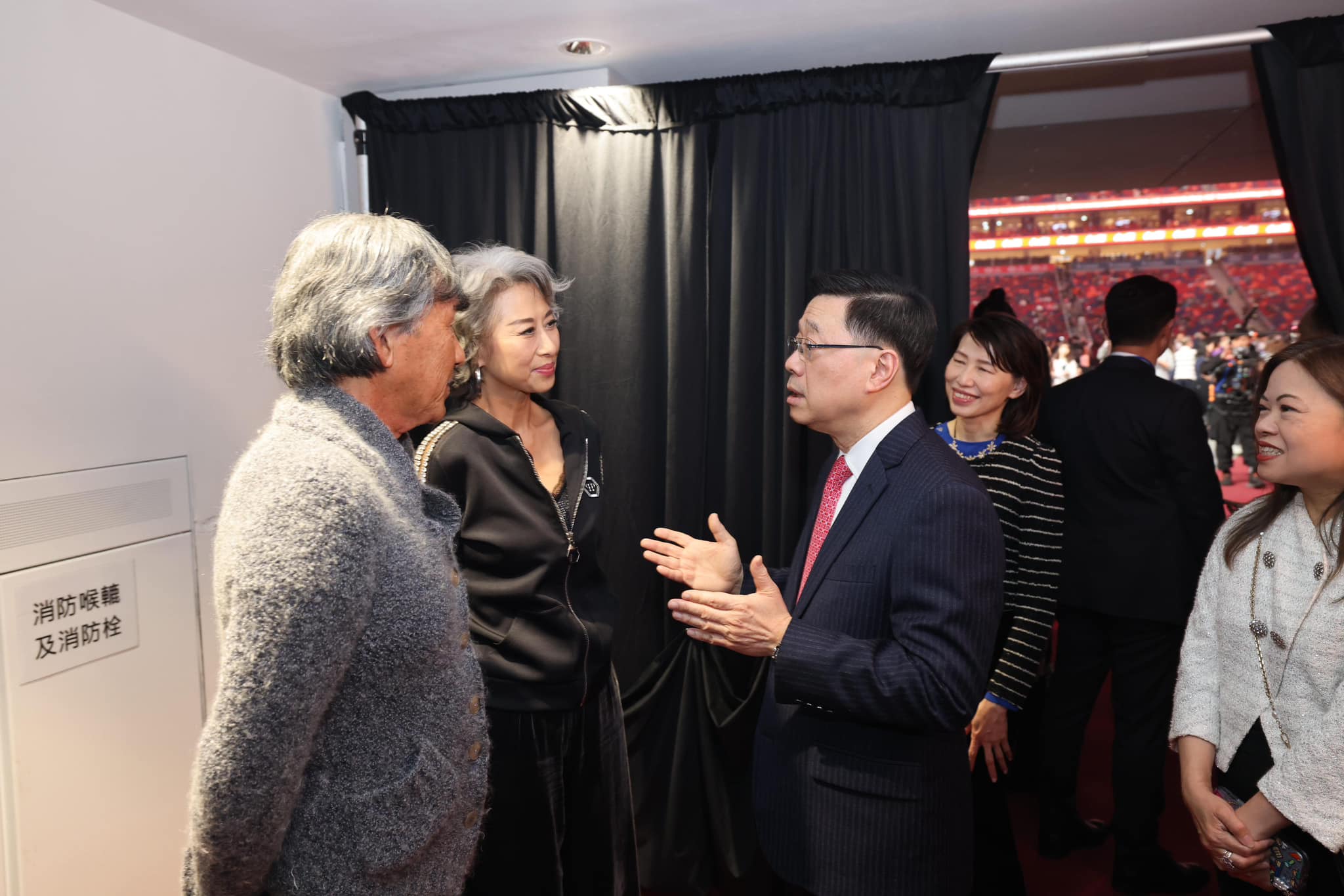 李家超指,開幕典禮前,他分別與多位運動員、歌手、體育和娛樂業界代表進行交流。他們都表示,對啟德體育園這個全港最大型綜合體育及娛樂地標的多元設施充滿期待。這個主場館可容納五萬名觀眾,其草坪系統設計先進靈活,配備東方之珠「幻彩外牆屏幕」和開合天幕,無論天氣如何都能舉辦足球、欖球等大型賽事,亦可搖身一變成萬人合唱的演唱會場館,營造出熱烈壯觀的氛圍。