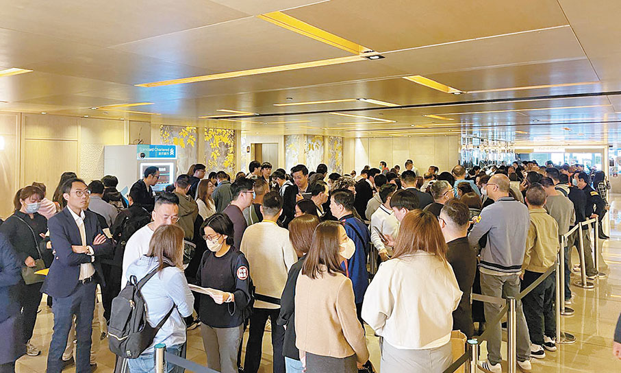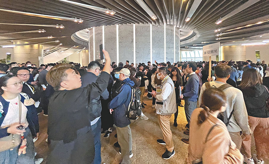 累收約7,000票、樓花期約10個月的恒基地產與一本地家族合作之九龍城南首昨發售首輪181伙,涵蓋一房及兩房戶,折實價409.9萬元至728.6萬元。記者從昨早10時45分在中環IFC 1期寫字樓大堂所見,B組散客時段吸引大批準買家提早到場登記上售樓處,場面相當墟冚,人龍一度延伸至寫字樓外。不少準買家、經過市民都在現場駐足拍照,拍下場面墟冚畫面,有地產代理甚至大嘆「近幾年(新盤開售)都無見過咁多人」。