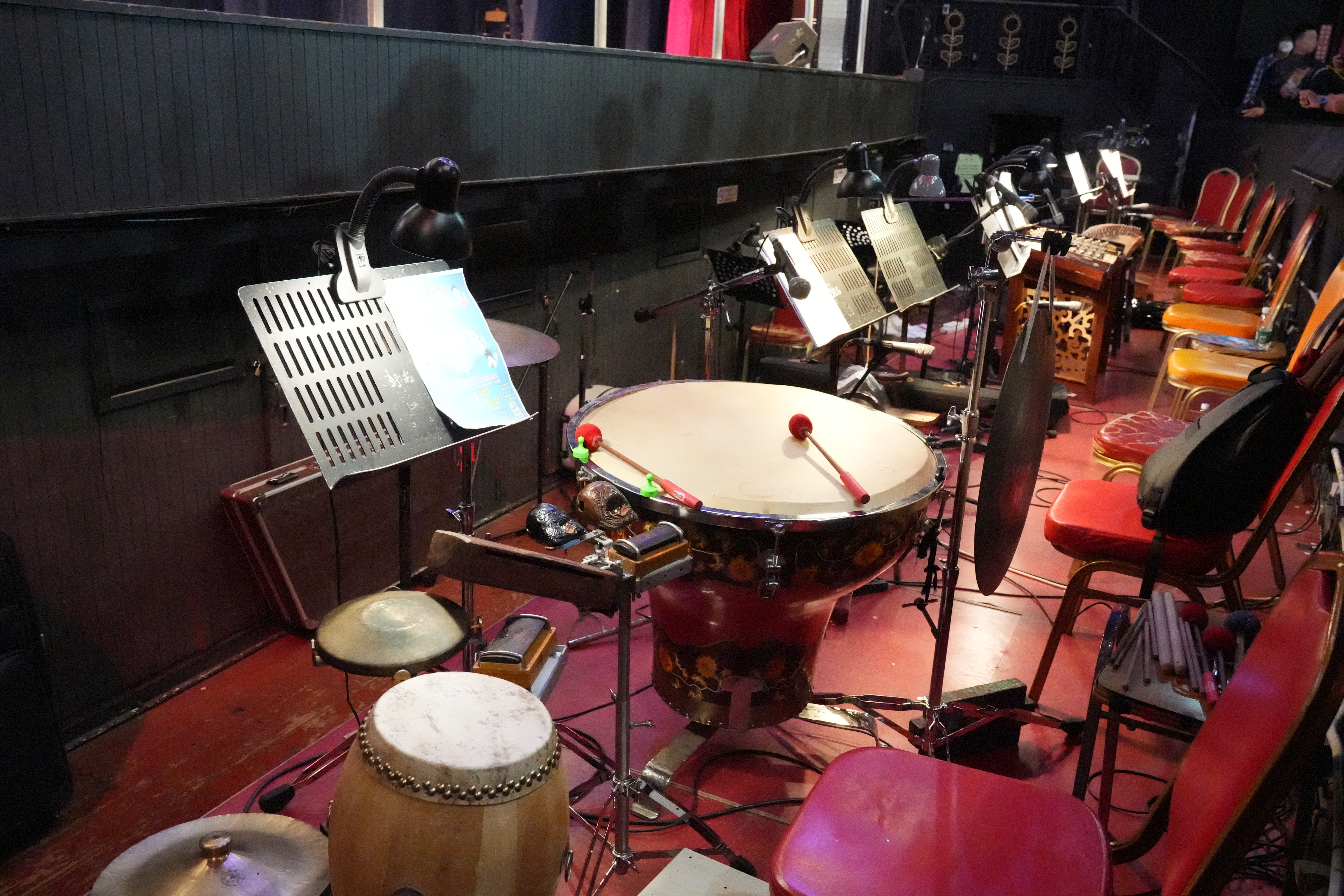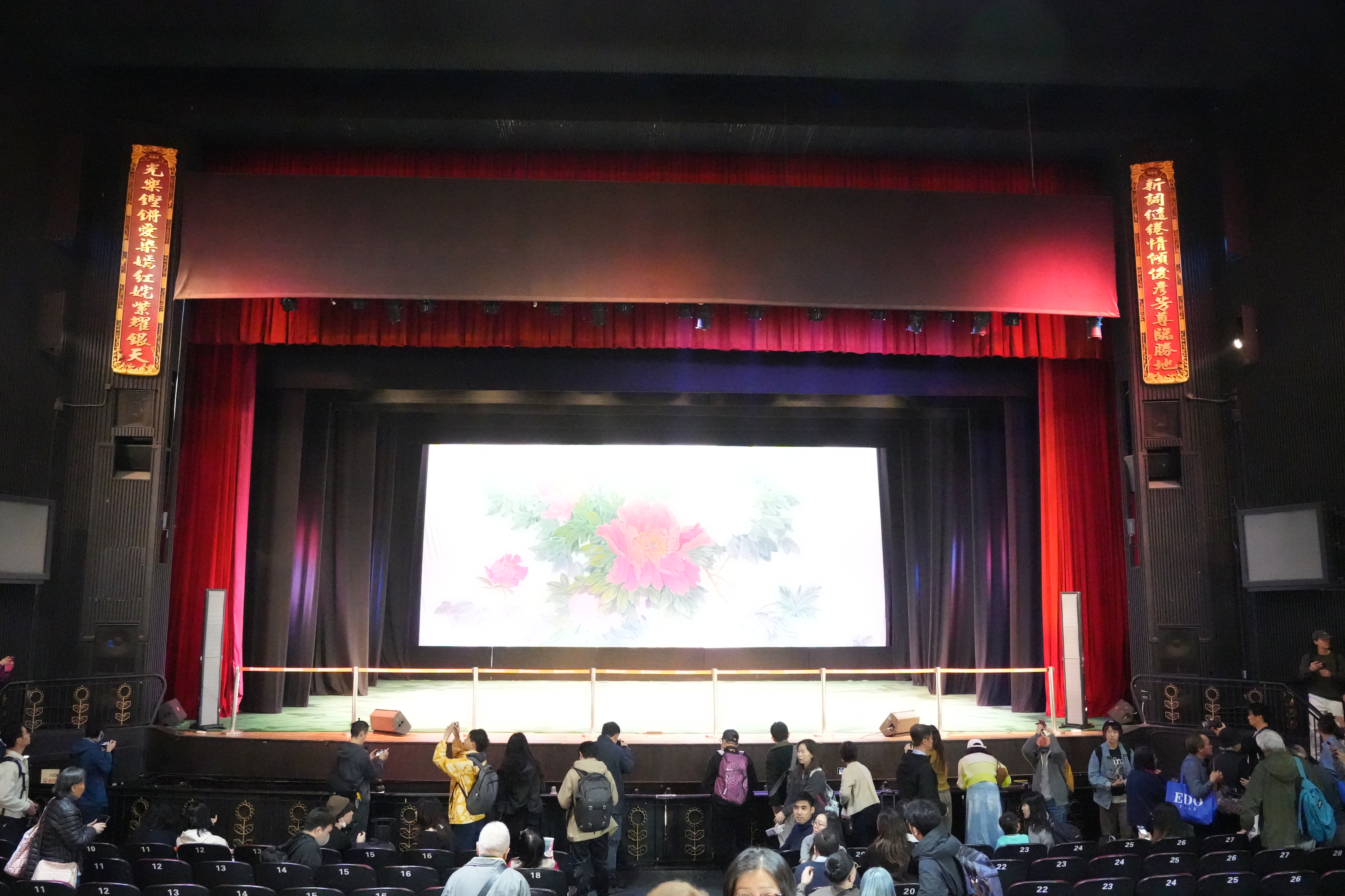 劇院門口處擺放一個大鼓和銅鑼,其中鼓代表名氣,而敲鑼則是習俗,代表正式演出,一共敲六下,為演出帶來好運。戲院門口還有國家級非物質文化遺產傳承人、京劇表演大師梅葆玖的書法對聯,以及李居明大師2018年題字的牌額可供欣賞。