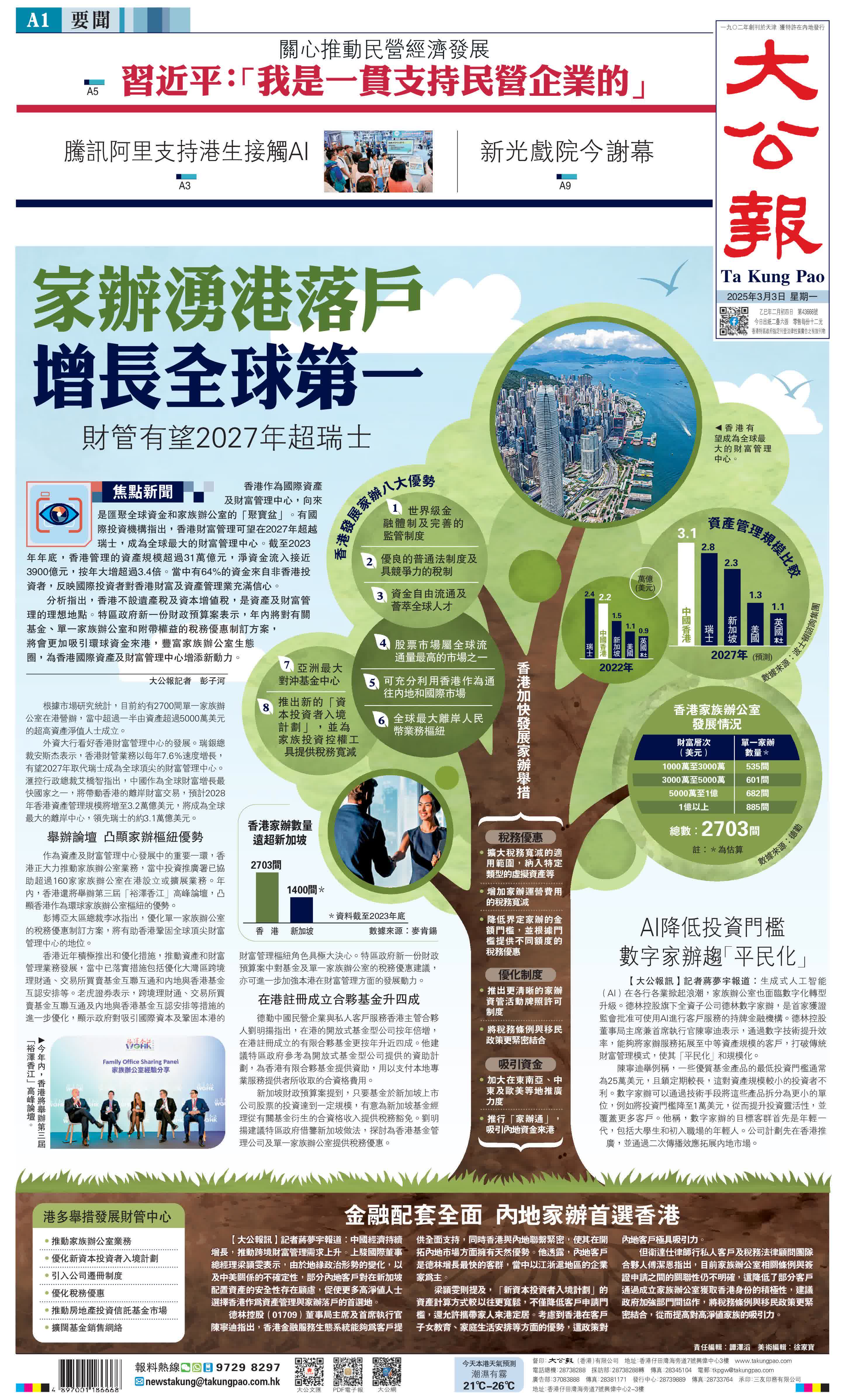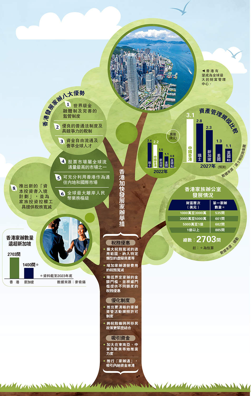 分析指出,香港不設遺產稅及資本增值稅,是資產及財富管理的理想地點。特區政府新一份財政預算案表示,年內將對有關基金、單一家族辦公室和附帶權益的稅務優惠制訂方案,將會更加吸引環球資金來港,豐富家族辦公室生態圈,為香港國際資產及財富管理中心增添新動力。