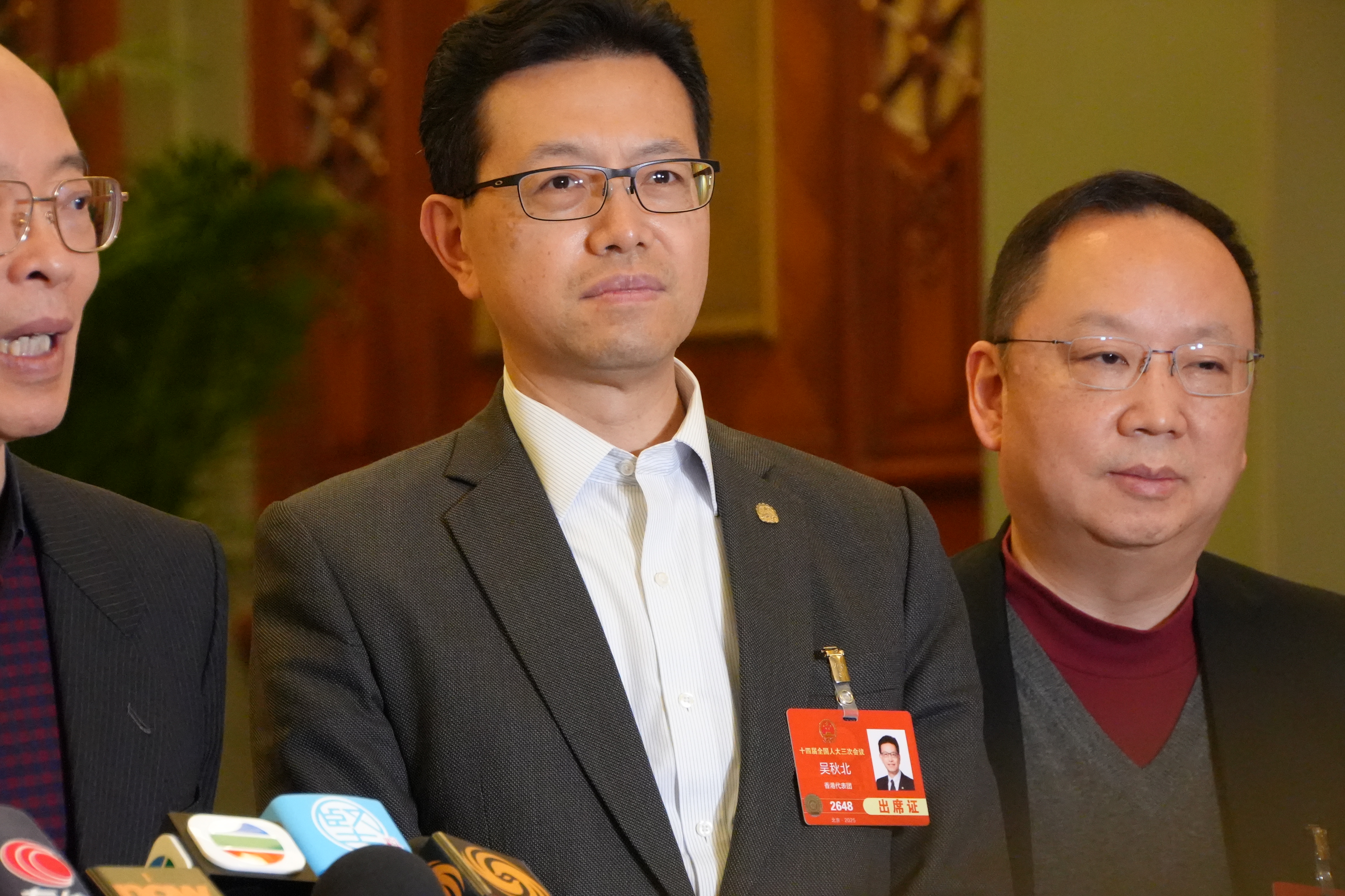 港區全國人大代表吳秋北表示,港區全國人大代表團精神飽滿,今年是國家「十四五」規劃收官之年,期待政府工作報告、「十五五」規劃能夠與香港發展對接,透過香港所長貢獻國家所需,為國家作出貢獻。