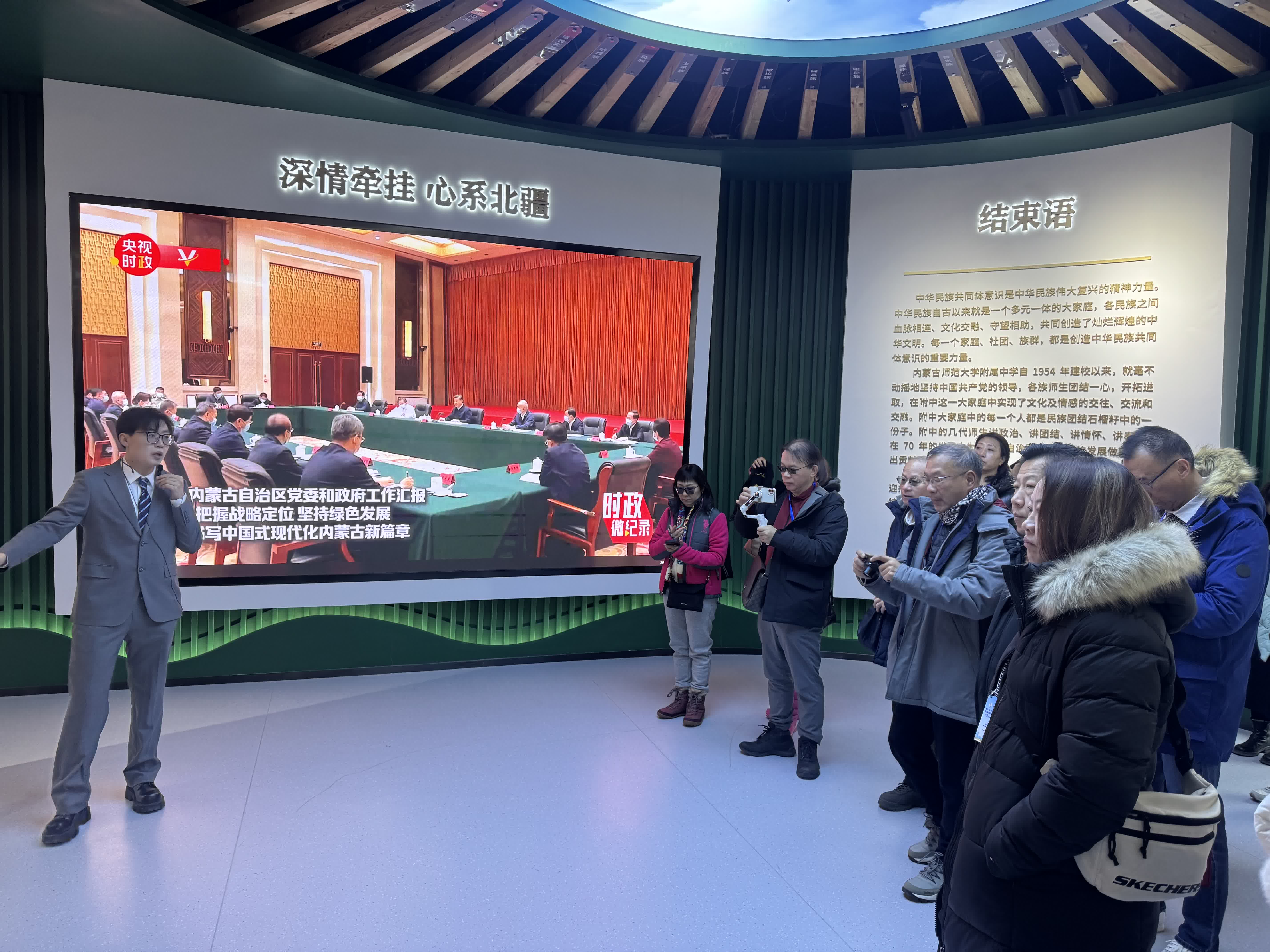 2月25日上午,港澳校長們來到內蒙古師範大學附屬中學考察交流,並召開了座談會。考察團一行參觀了鑄牢中華民族共同體意識實踐教育基地、校史館等多個特色展館,深入了解學校在民族團結教育方面的突出成就,並參觀了學校先進的科技教育設施。通過豐富的歷史資料和實物展品,校長們感受到了學校深厚的歷史底蘊和辦學理念。校黨委書記薩日娜表示,學校將積極探索與粵港澳大灣區學校的合作,讓更多粵港澳大灣區的師生走進內蒙古,感受草原文化的獨特魅力。遊學機構代表、校長及老師們在會上介紹了港澳地區組織學生到內地遊學的相關情況,也高度評價了內蒙古地區的教育事業的發展成果,特別是對該校不同民族的學生和睦相處、互相學習、共同進步的溫馨場景印象深刻,考察團一行都表示深受感動。