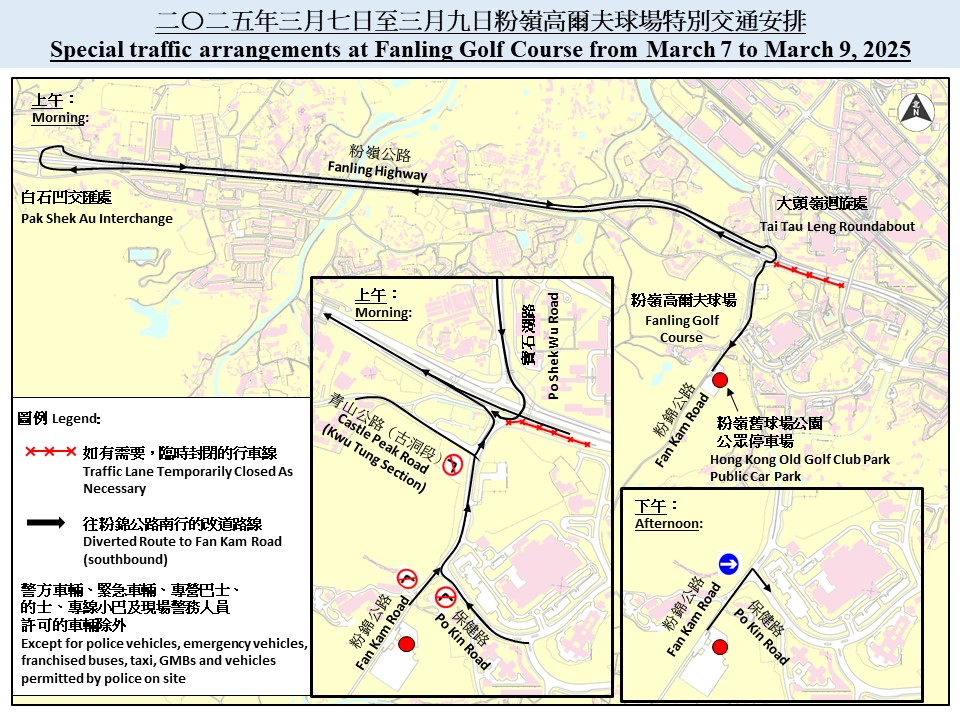 - 賽事舉行期間,所有違例停泊在粉嶺高爾夫球場一帶的車輛,將會在沒有事前警告的情況下被拖走或被重複票控。