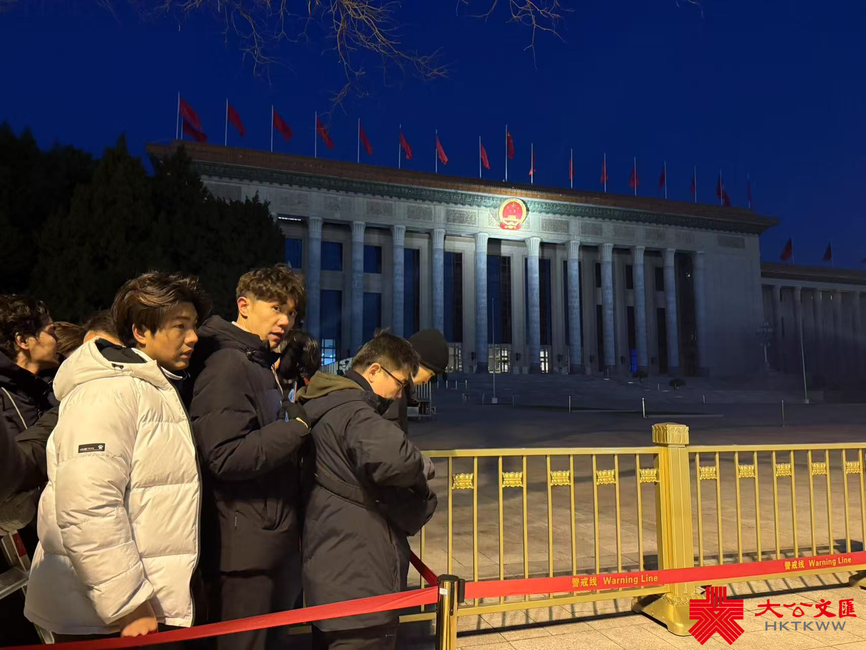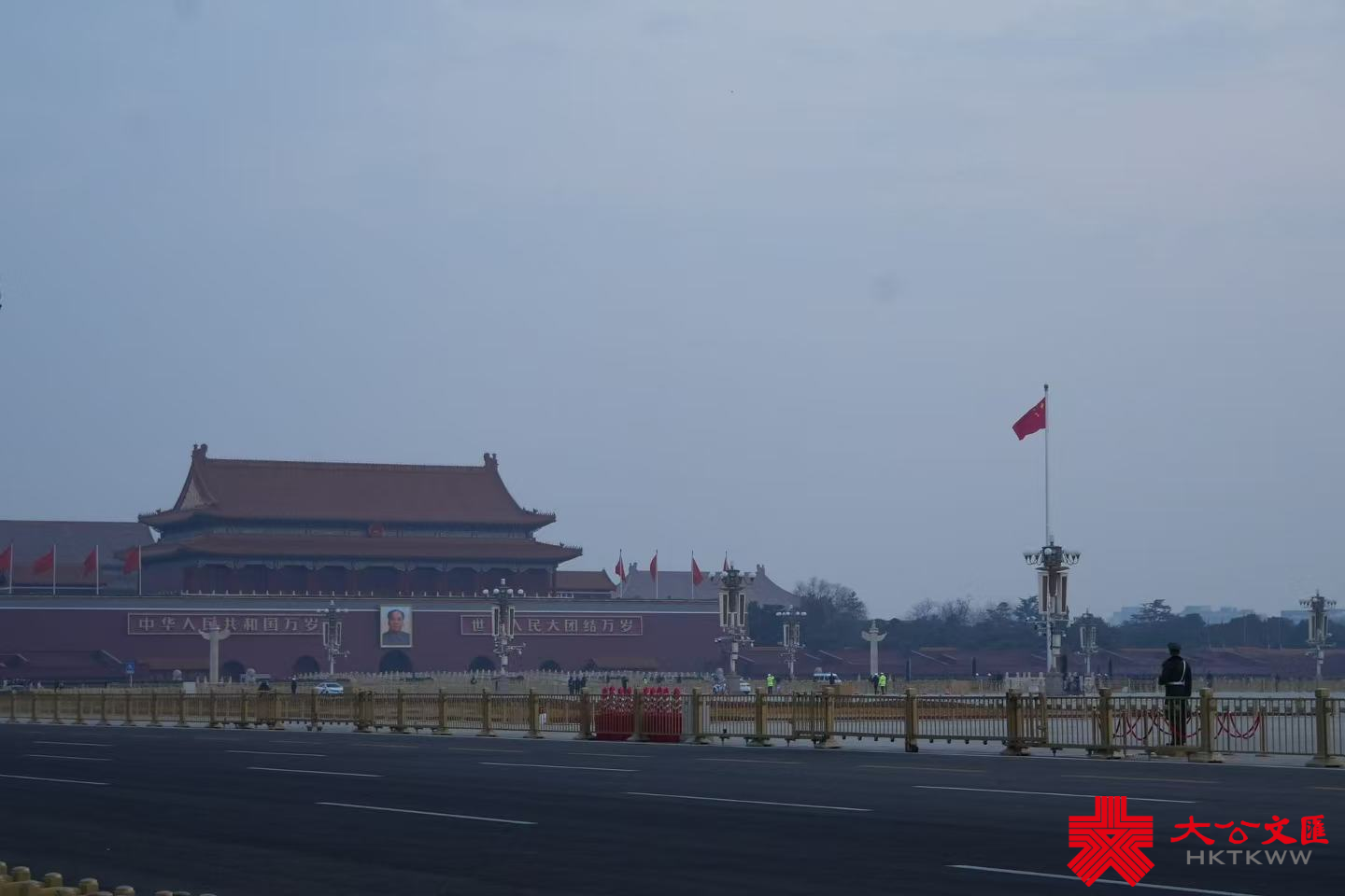 清晨5點多的北京,長安街燈火通明。和我們向同一方向前行的,是一隊又一隊去天安門看升旗儀式的遊客和市民。抵達人民大會堂附近時,現場已經有約三四十位行家記者,聽排頭位的記者說,他凌晨2點就到了,只為第一個衝進去拿到最好的拍攝位置。