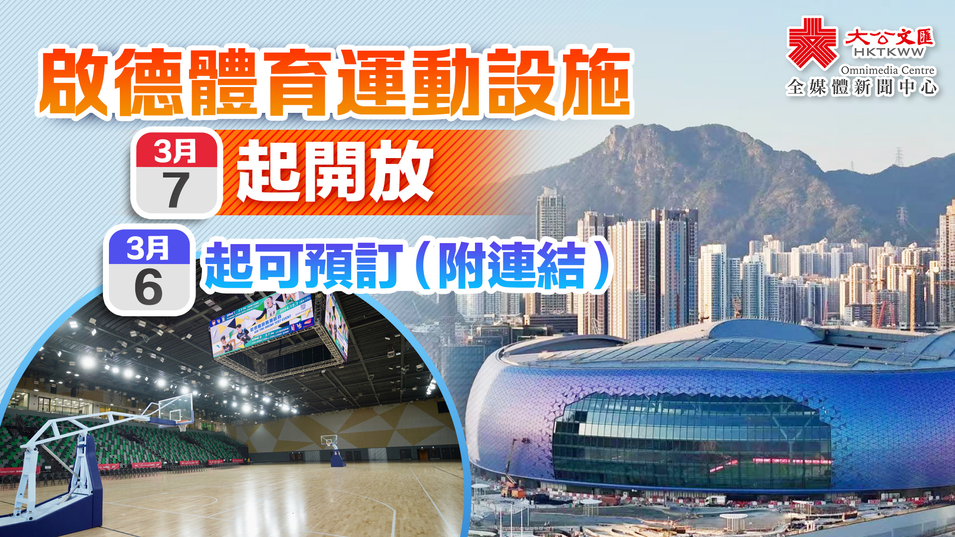 大公文匯全媒體報道,隨着啟德體育園正式開幕,園方將於3月7日(星期五)起陸續開放園內部分體育運動設施,全力推動社區體育運動普及化,為大眾帶來全新的場地設施與運動體驗。各主要場地設施目前已陸續就緒,具體開放及使用詳情如下。