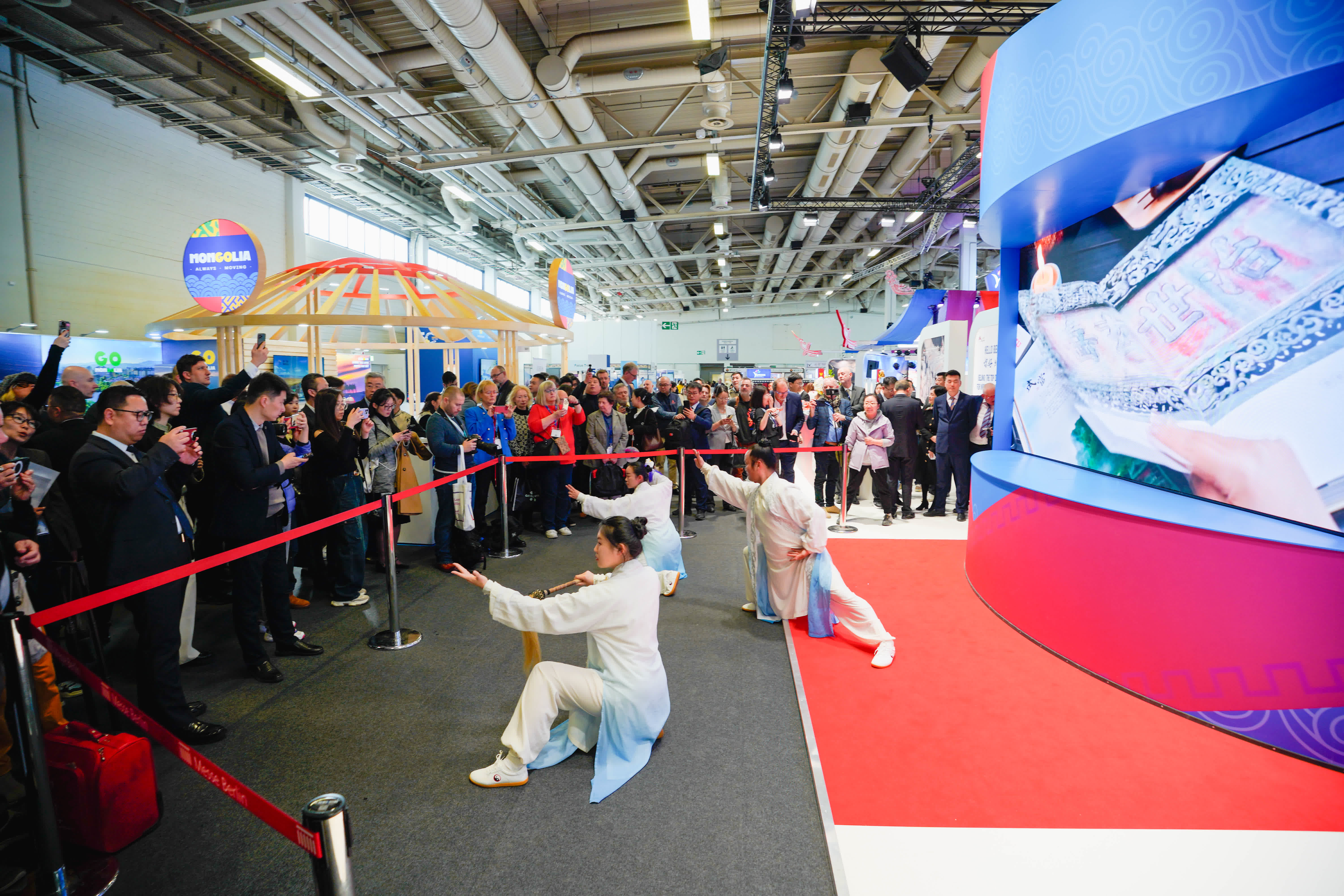 當地時間3月4日12時,中國展人潮如織,湖北省歌劇舞劇院編鐘國樂團帶去的一曲喜慶大氣的民樂合奏《盛世國樂》拉開了展會的精彩序幕。管弦絲竹聲聲,盡展華夏風情和對盛世中國的熱愛和讚美。武當武術表演《天下太極出武當》震撼上演,武當功夫團演員們動作流暢、氣勢磅礴,將武當太極的精髓演繹得入木三分,讓國際友人近距離感受到了中華武術的獨特與武當神韻。緊接著,武漢雜技團一級演員、西班牙菲格雷斯國際馬戲節金獎得主吳松濤,獻上了魔術《魔幻手彩》。他的表演如行雲流水,將中國傳統魔術的奇幻魅力展現得淋漓盡致,讓現場觀眾驚歎不已。旅遊推介與文藝演出深度融合的精彩呈現,綻放荊風楚韻的獨特魅力,也讓參會嘉賓對湖北這片充滿傳奇色彩的土地心生向往。