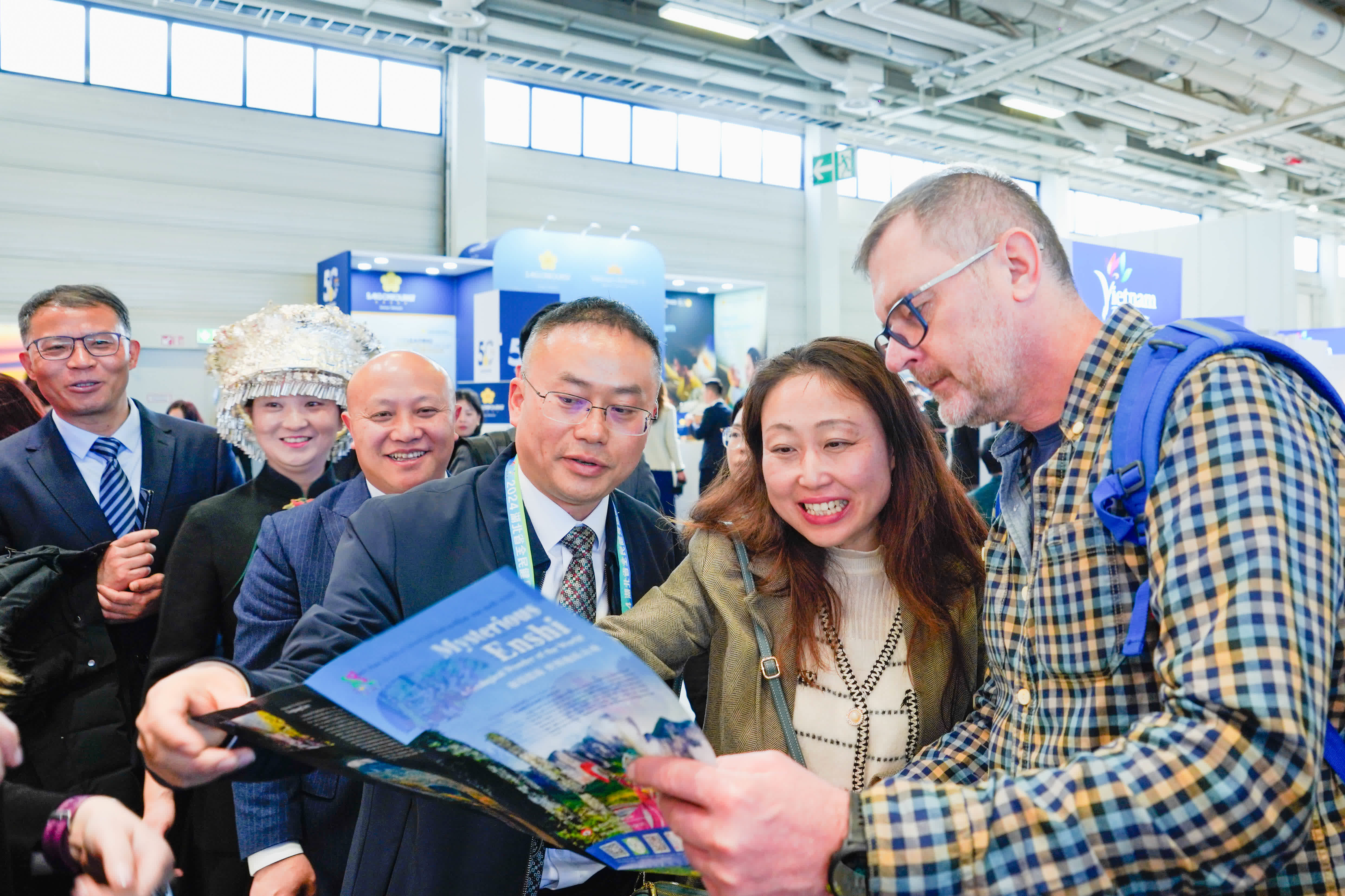 湖北展區的「黃鶴樓」燈箱亮眼奪目,自2025年湖北省會武漢市首次作為中央電視台春節聯歡晚會分會場登上央視春晚,湖北地標黃鶴樓得到更多關注,在ITB再次吸引了全球遊客的矚目。以ITB參展為契機,湖北文旅精心策劃了5條世界級文化旅遊線路,進入歐洲買家圈視野。「神農架・武當山・長江三峽」 、賽博武漢 、長江黃金旅遊帶、荊楚文化、恩施世界地質公園等作為湖北國際旅遊名片,受到在場商家青睞。湖北文旅代表團還通過高清視頻的震撼展示、精美圖片的生動呈現、「面塑」非遺等互動體驗,重點推介武漢、宜昌、十堰、神農架等重點旅目的地。
