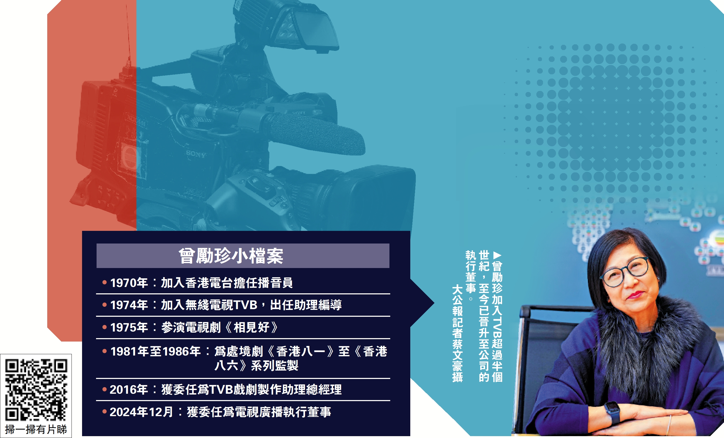 18歲任職電台播音員的曾勵珍,上世紀七十年代初期,獲時任TVB節目發展主任周梁淑怡邀請,因而展開在TVB長達半世紀的銀色旅途。她由助理編導做起,也曾參與幕前演出,到後來擔任監製、戲劇製作部總監,如今已成為上市公司執行董事。