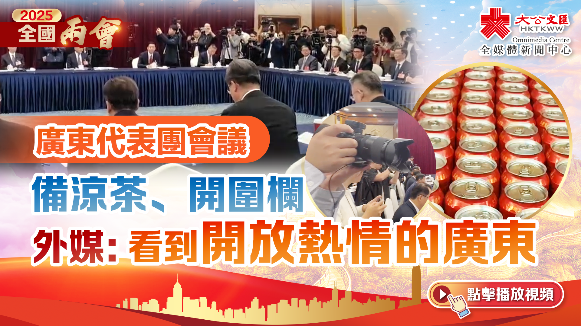 大公文匯全媒體報道,今日(6日)下午,十四屆全國人大三次會議廣東代表團舉行全體會議,並對中外媒體開放。現場不僅為媒體朋友准備了廣東特色茶點,還將欄杆全部打開,允許記者「零距離」採訪拍攝。現場准備了具有廣東特色的降火去燥的陳皮涼茶,吸引大批記者朋友現場品嘗,還有人吃不完「兜着走」。有境外媒體表示,通過這個細節看到開放熱情的廣東。廣東代表團在開放日上,宣布允許記者「零距離」採訪拍攝,瞬間大家一擁而上,帶着設備往前「衝」,搶佔最佳位置報道。記者可以在會場自由走動,及時捕捉會議精彩瞬間,實現「全方位」報道,可謂「寵粉」。