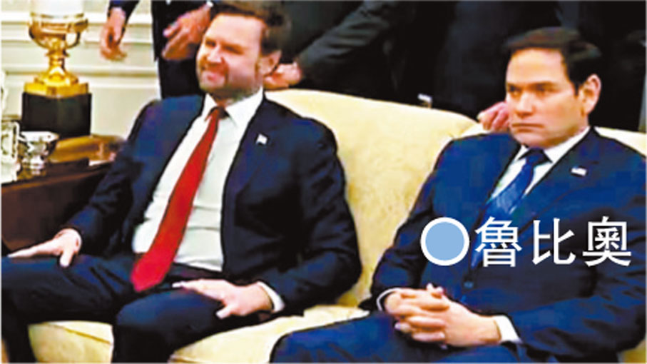 香港文匯報報道,美國總統特朗普及副總統萬斯上周與烏克蘭總統澤連斯基爆發罵戰後,美國國務卿魯比奧在會談期間的「尷尬」表情(圖)引起媒體關注。美國《名利場》雜誌報道,魯比奧在外交政策上被邊緣化,消息人士推測他最多只能當18個月的國務卿。