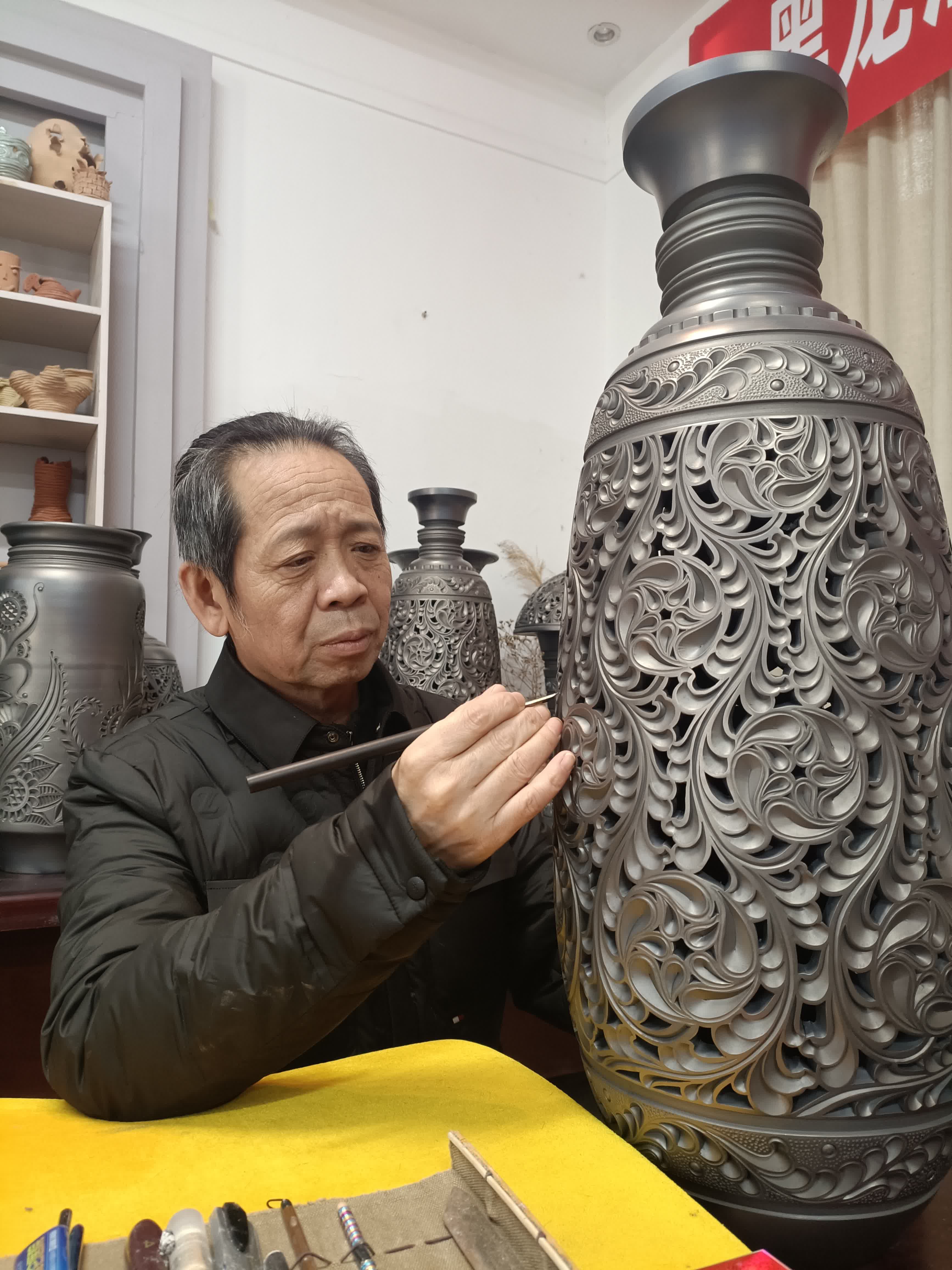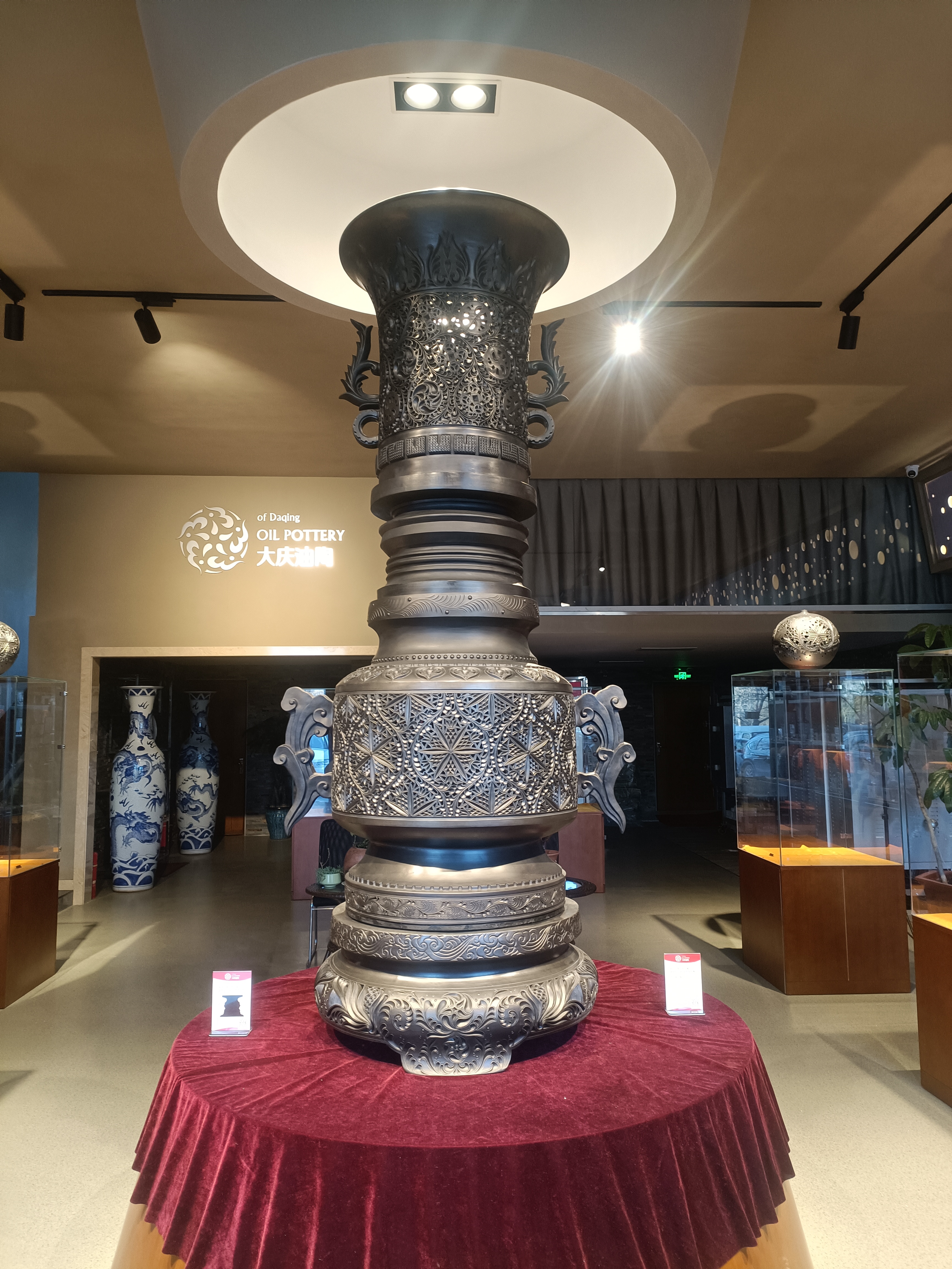 每一件油陶的誕生,需經制泥、拉坯、雕刻等數十道工序,李方海以近乎執拗的匠心賦予其靈魂。例如《鐵人瓶》系列,光照下瓶頸處會投射出王進喜的影像,以雙觀圖形式將鐵人精神融入器型,成為「會呼吸的文化符號」。如今,油陶不僅被列為非物質文化遺產,更作為城市名片亮相央視《魅力中國城》,成為國際文化交流的「黑土地禮品」。
