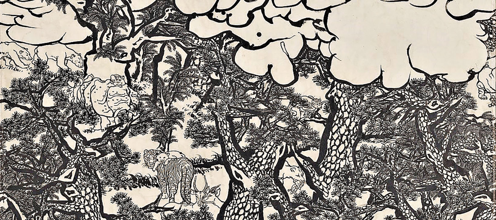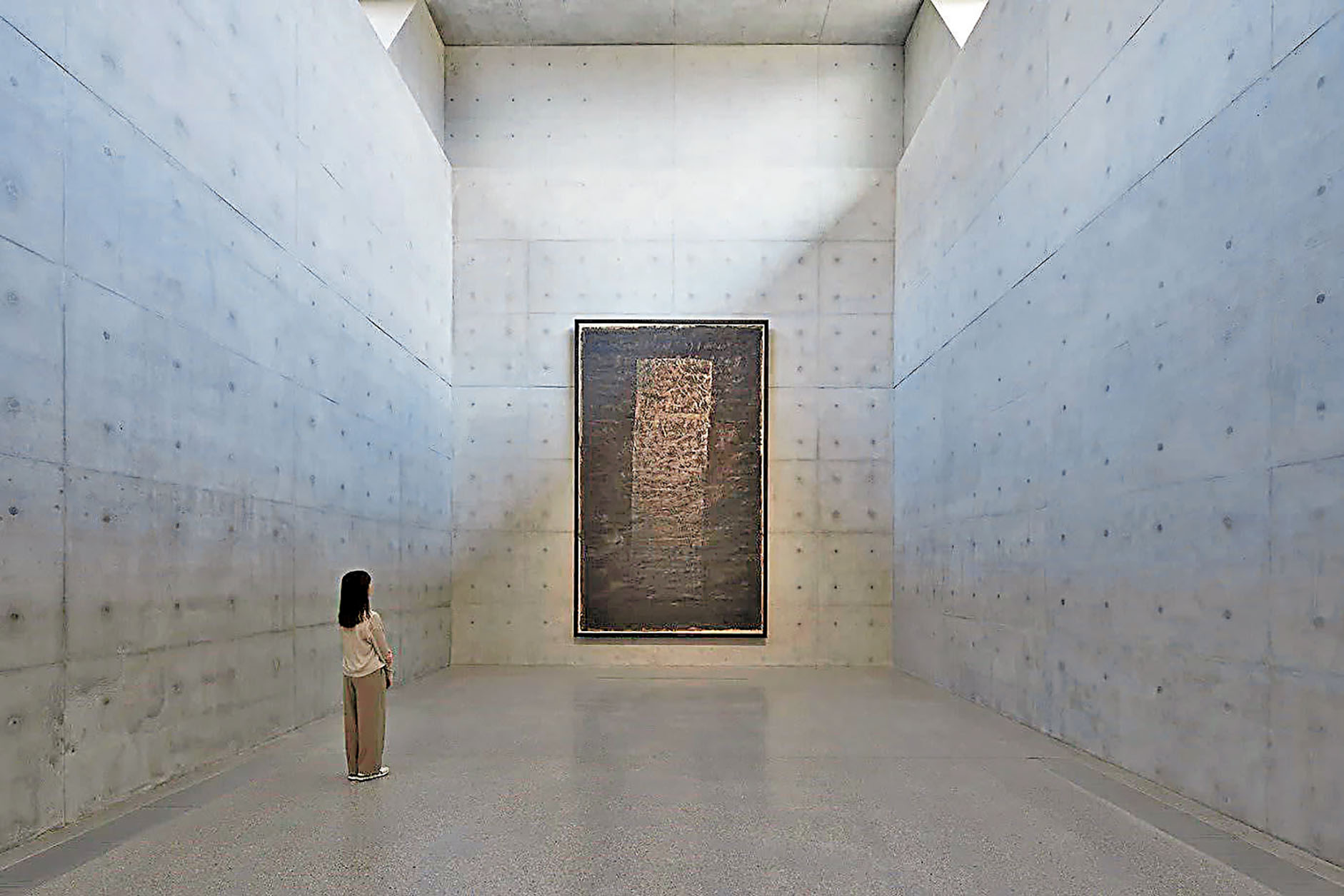 《千層墨─獻給昨天的中國明天》(1990)是楊詰蒼著名的《千層墨》系列(1989–1999)中體量最大之作。此作品最初於1990年在法國普里耶爾的一座修道院教堂遺址展出,當時,楊詰蒼更使用了從教堂墓園挖掘的沙土,在作品對面建造了一根巨柱。時隔三十多年,作品經過M+數月的修復工作後再度公開亮相,並配合記錄該系列創作過程的珍貴影片一同展出。《千層墨》系列影響深遠,為中國當代藝術中為人熟知的創作手法開啟先例,如水墨介入行為藝術和無痕的重複動作等。