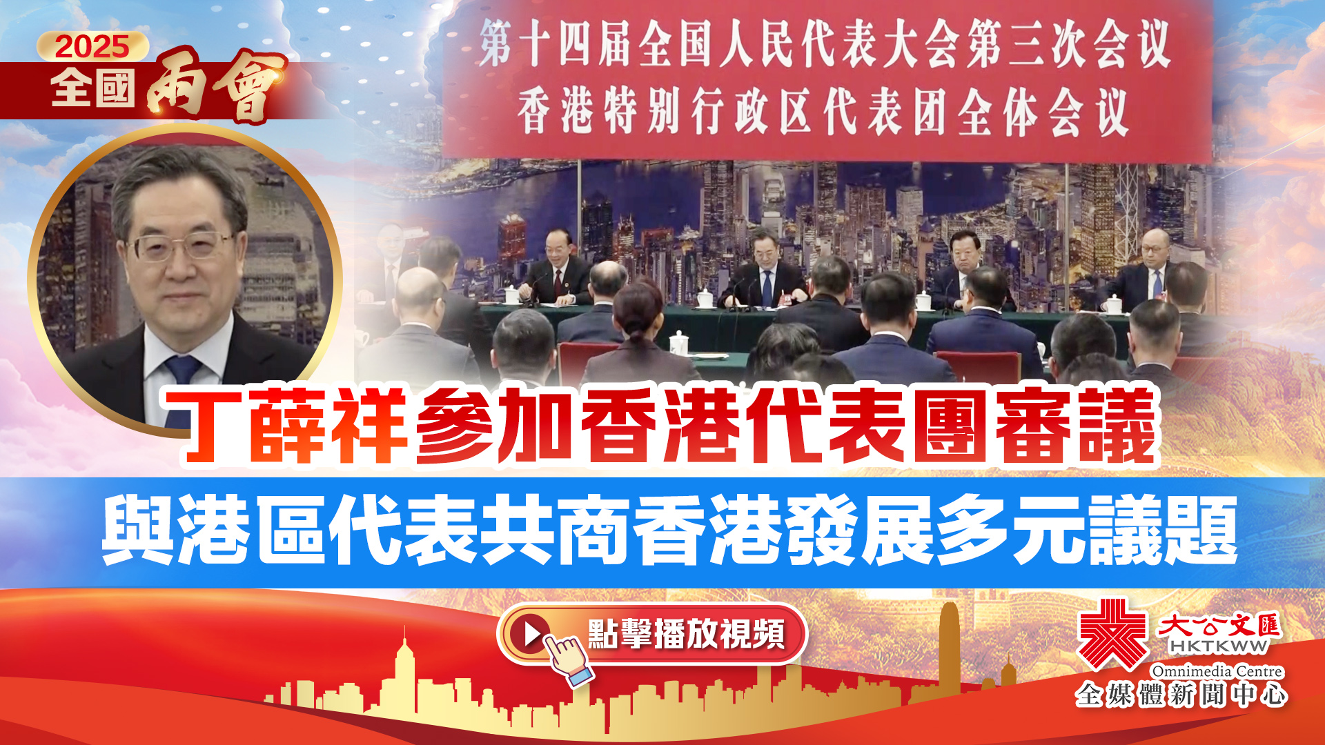 (大公文匯全媒體 記者 蘆葦、蘇婷、鄭洢林)中共中央政治局常委、國務院副總理丁薛祥今日(7日)上午參加十四屆全國人大三次會議香港代表團審議。
