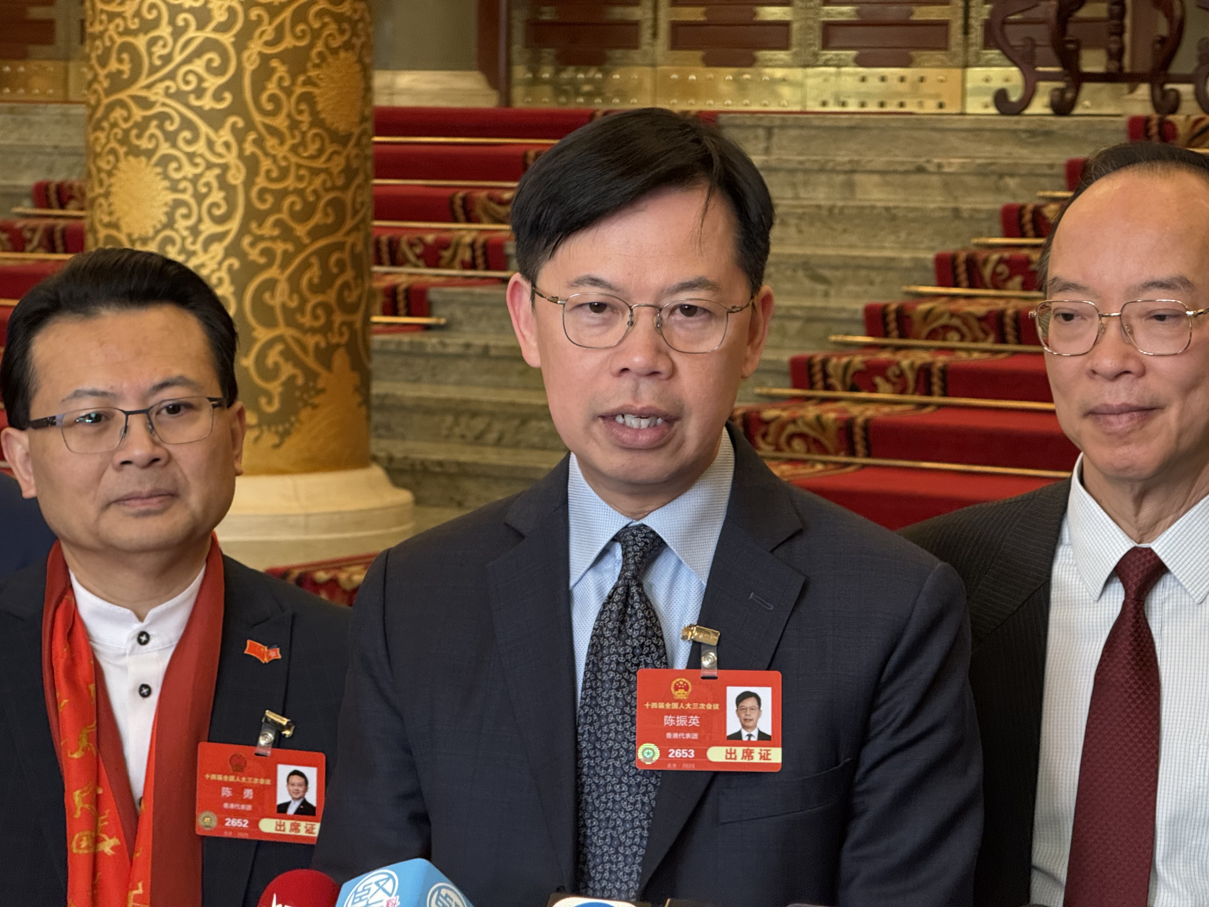港區全國人大代表陳振英表示,自己發言的主題主要是圍繞如何鞏固提升香港國際金融中心地位,加快融入國家發展大局。他指出政府工作報告中有20多處提到金融,顯示非常重視金融。香港去年重回全球金融中心三甲的位置,得益於香港的優勢,但也要正視香港的短板,如資本市場規模和紐約、倫敦相比有距離,另外金融科技方面運用和競爭對手如新加坡有一定距離,同時香港還缺乏金融科技人才,如綠色可持續金融、跨境業務和人工智能等。