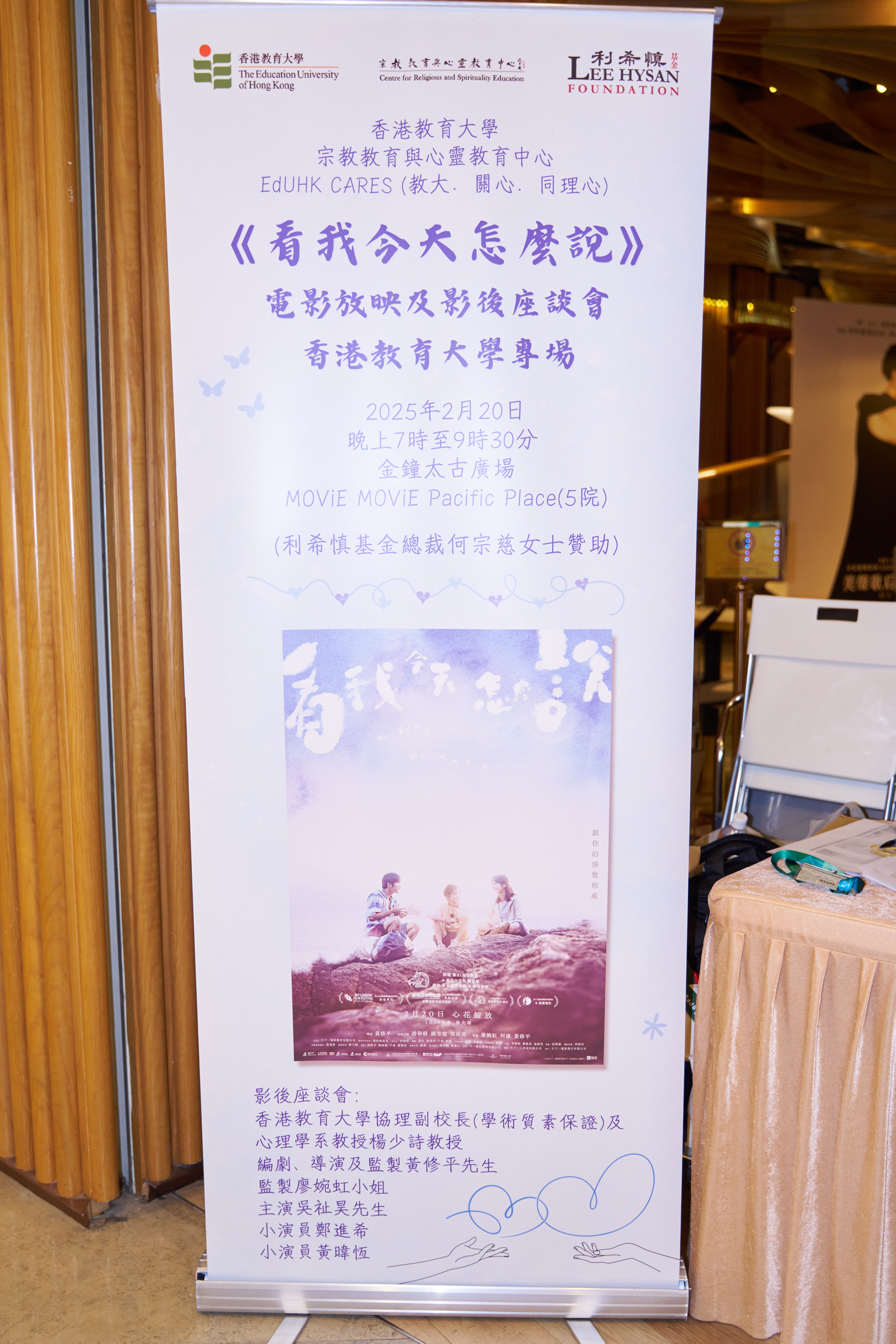 香港教育大學(教大)宗教教育與心靈教育中心(中心)獲利希慎基金總裁何宗慈女士贊助,於2月20日在金鐘太古廣場舉辦《看我今天怎麼說》香港教育大學專場放映會及影後座談會。