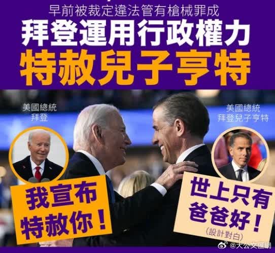 當地時間2024年12月1日,時任美國總統拜登宣布赦免唯一在世的兒子亨特。