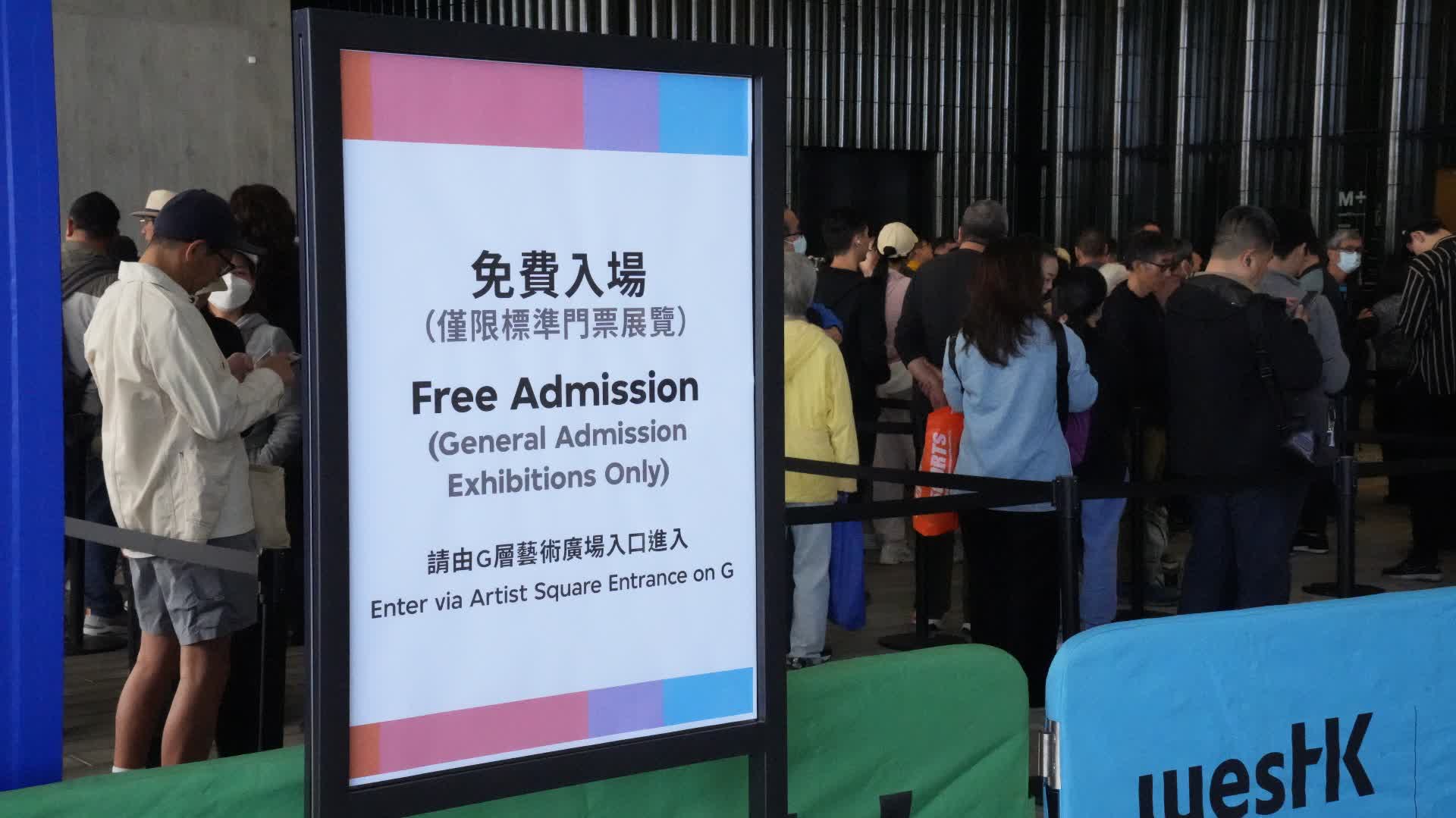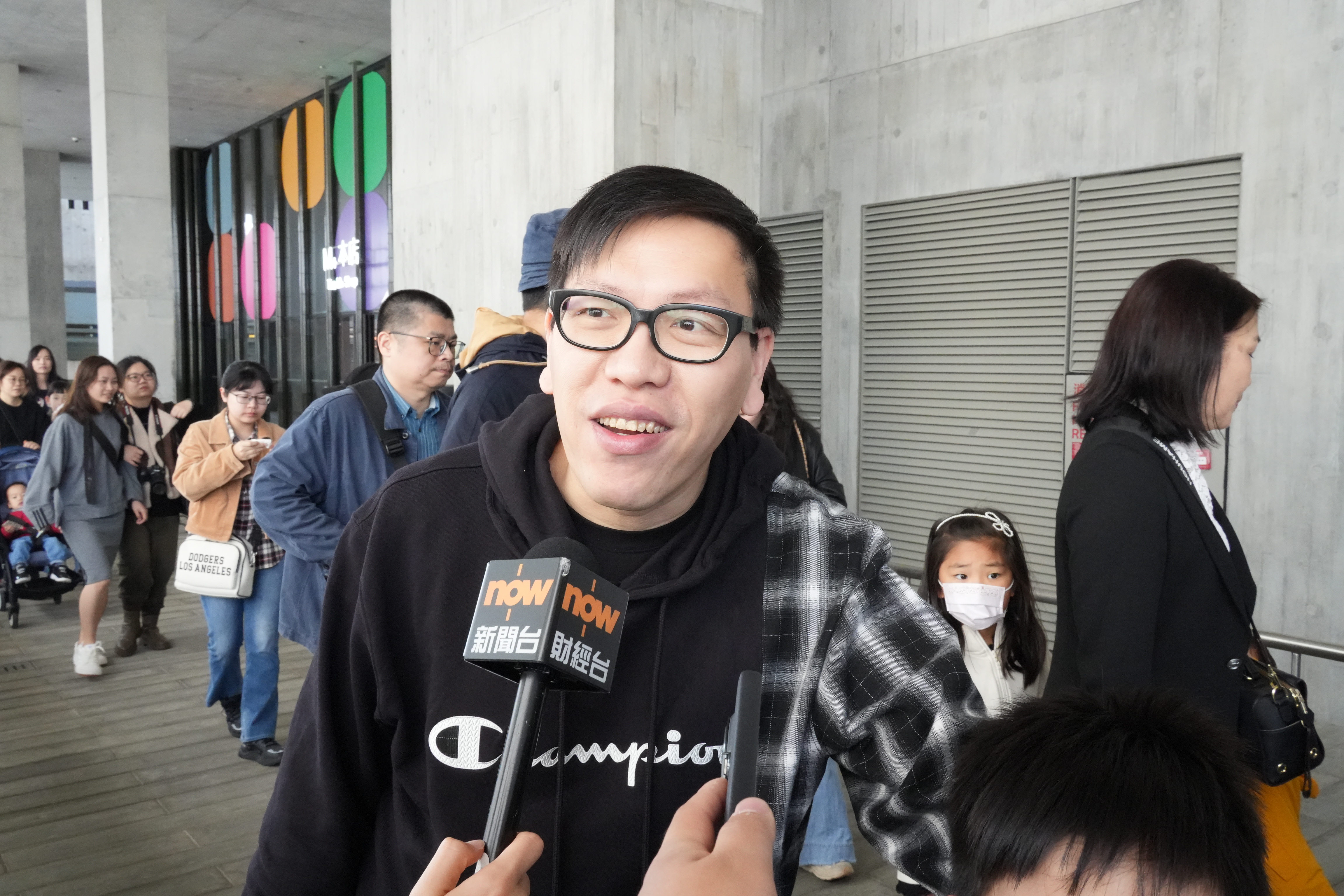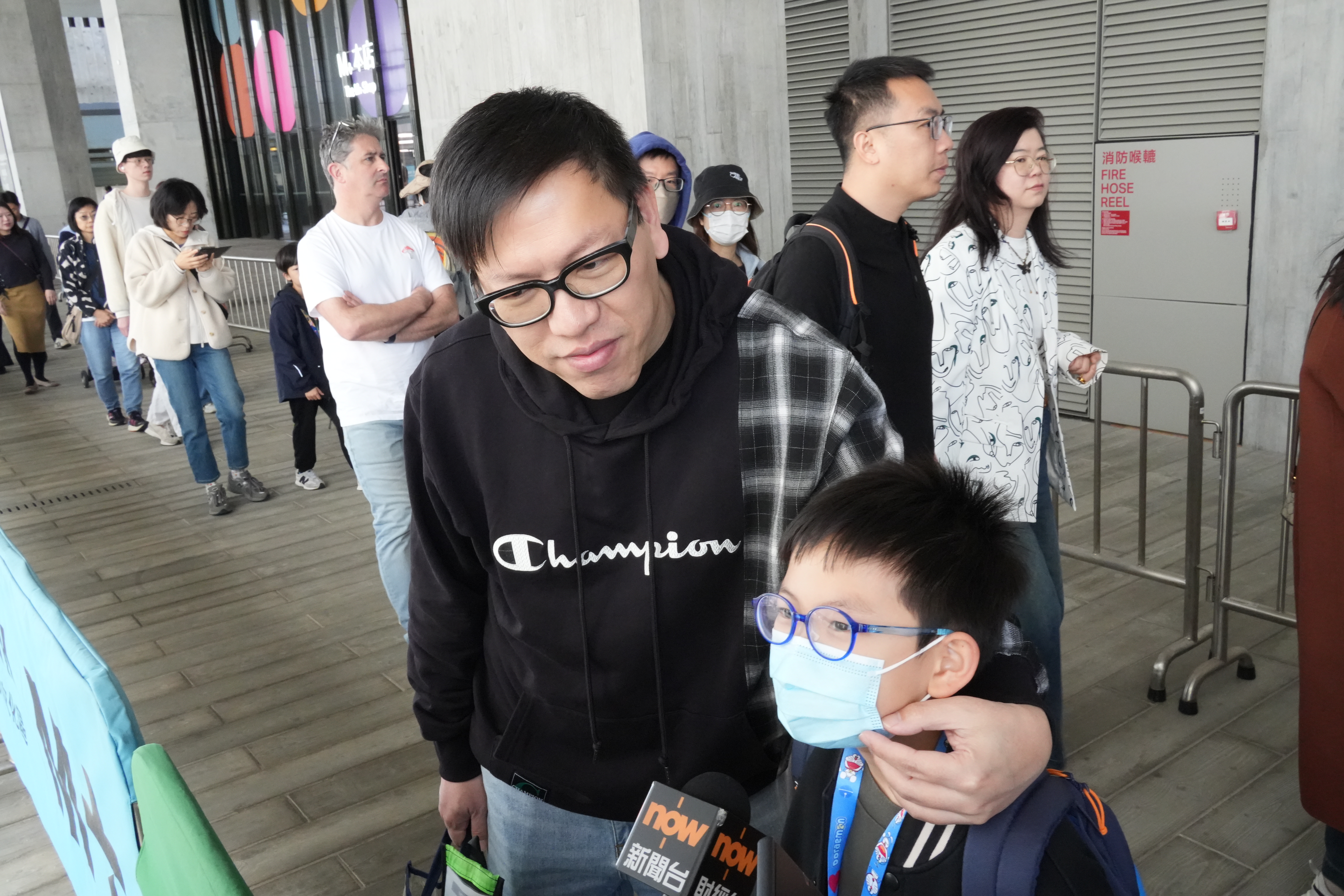 市民岑先生趁M+博物館免費開放部分展覽,帶同兒子前來參觀。他形容現場秩序良好,安排順暢,排隊約半小時便能進場,形容是很好的機會,能讓小朋友從小接觸藝術。