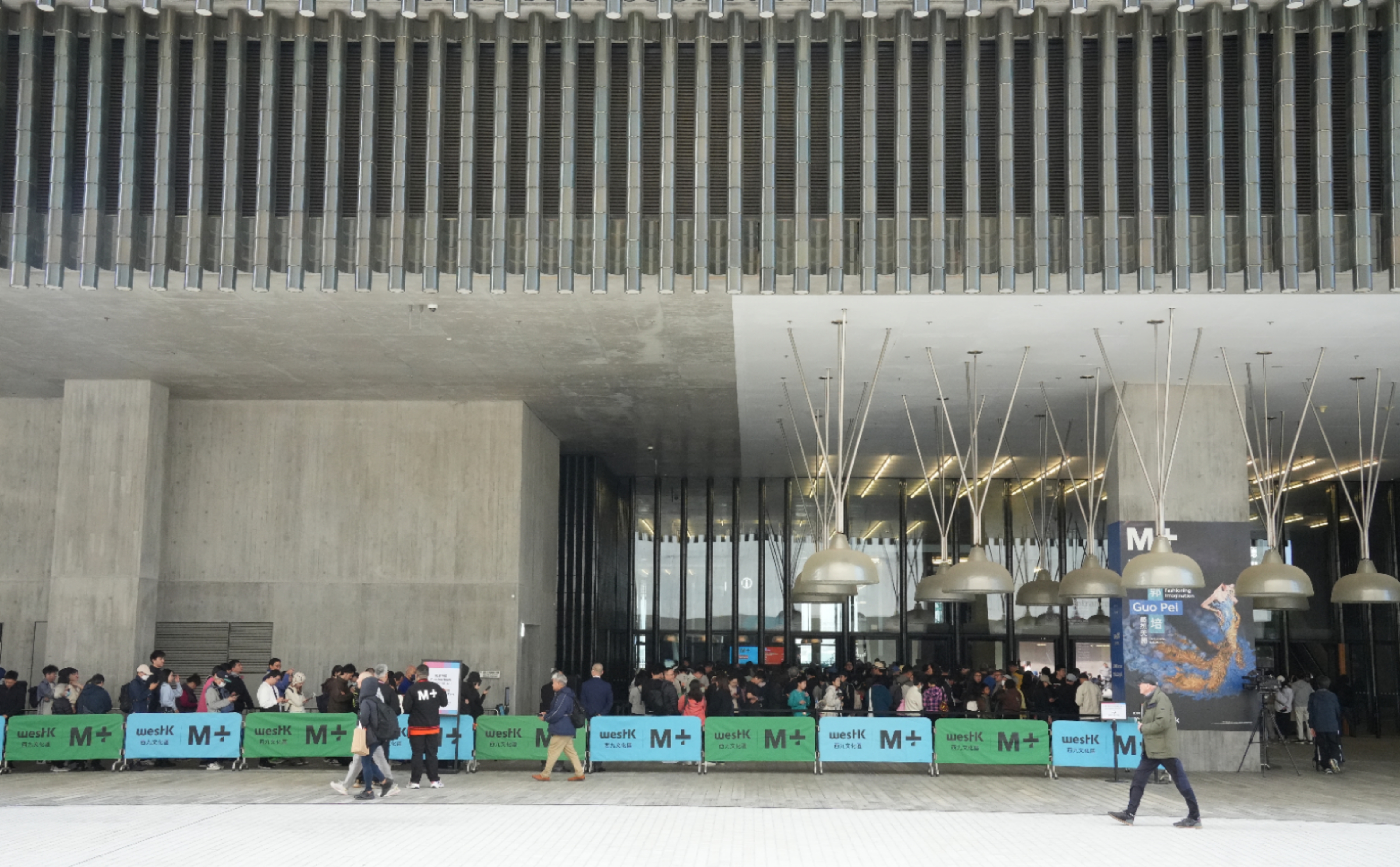 M+博物館是亞洲首個專注於全球當代視覺文化的博物館,館藏涵蓋20及21世紀的視覺藝術、設計與建築、流動影像以及香港視覺文化。博物館建築的寬廣基座平台懸挑於地面之上,內部設有33個展廳,總展覽面積達1.7萬平方米,並配備3間電影院、多媒體中心、學舍及面向維多利亞港的天台花園。博物館今日的開放時間為上午10時至下午6時,訪客無需提前預約即可免費參觀所有標準門票涵蓋的展覽。