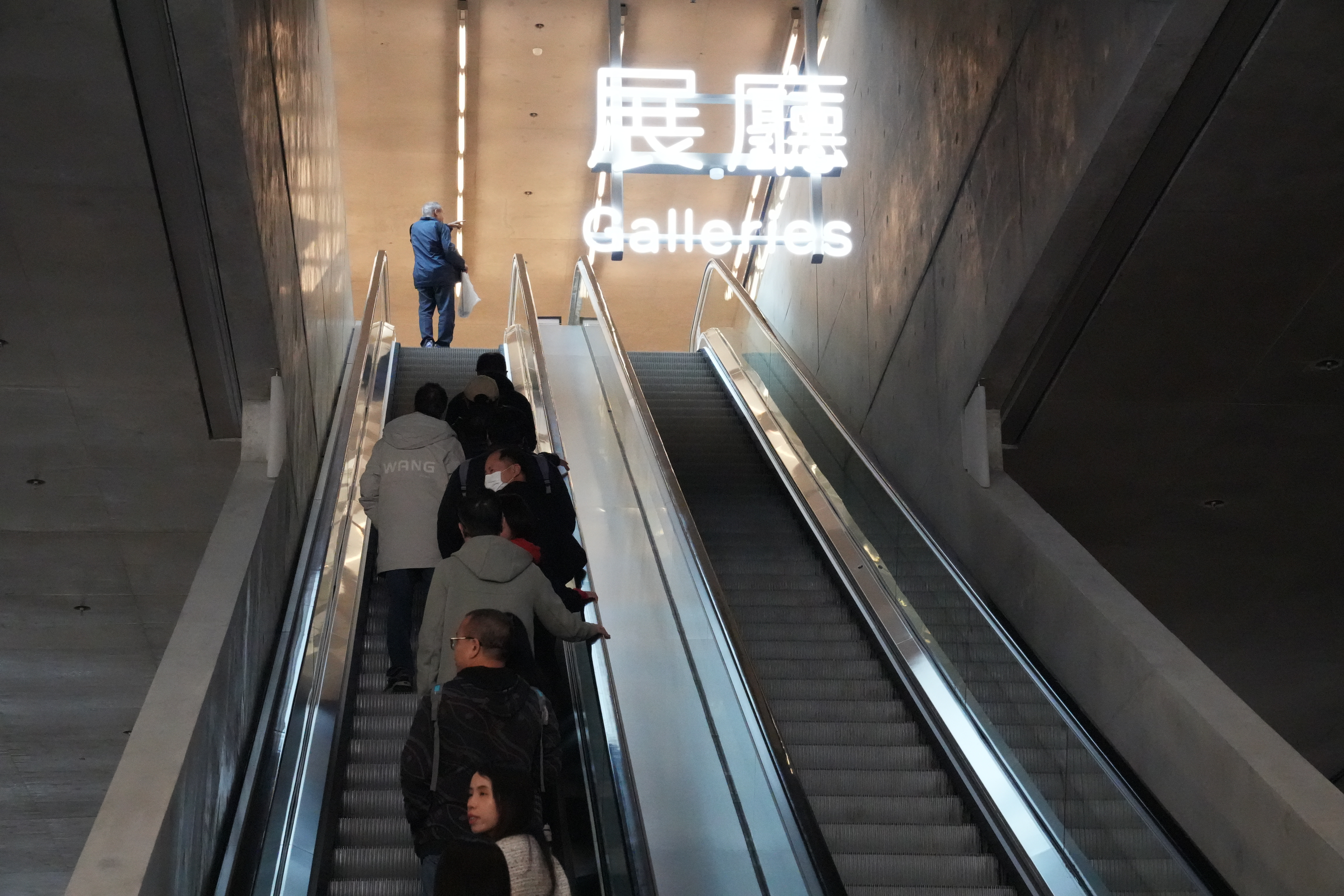 亦有遊客特地前來參加免費展覽。加拿大華裔Peter計劃訪港兩星期,早前從網站得知M+免費開放標準展覽,在在港友人的陪伴下一齊相約到西九欣賞藝術展品。他大讚M+博物館的主體充滿時代感和線條美,自己非常欣賞設計。
