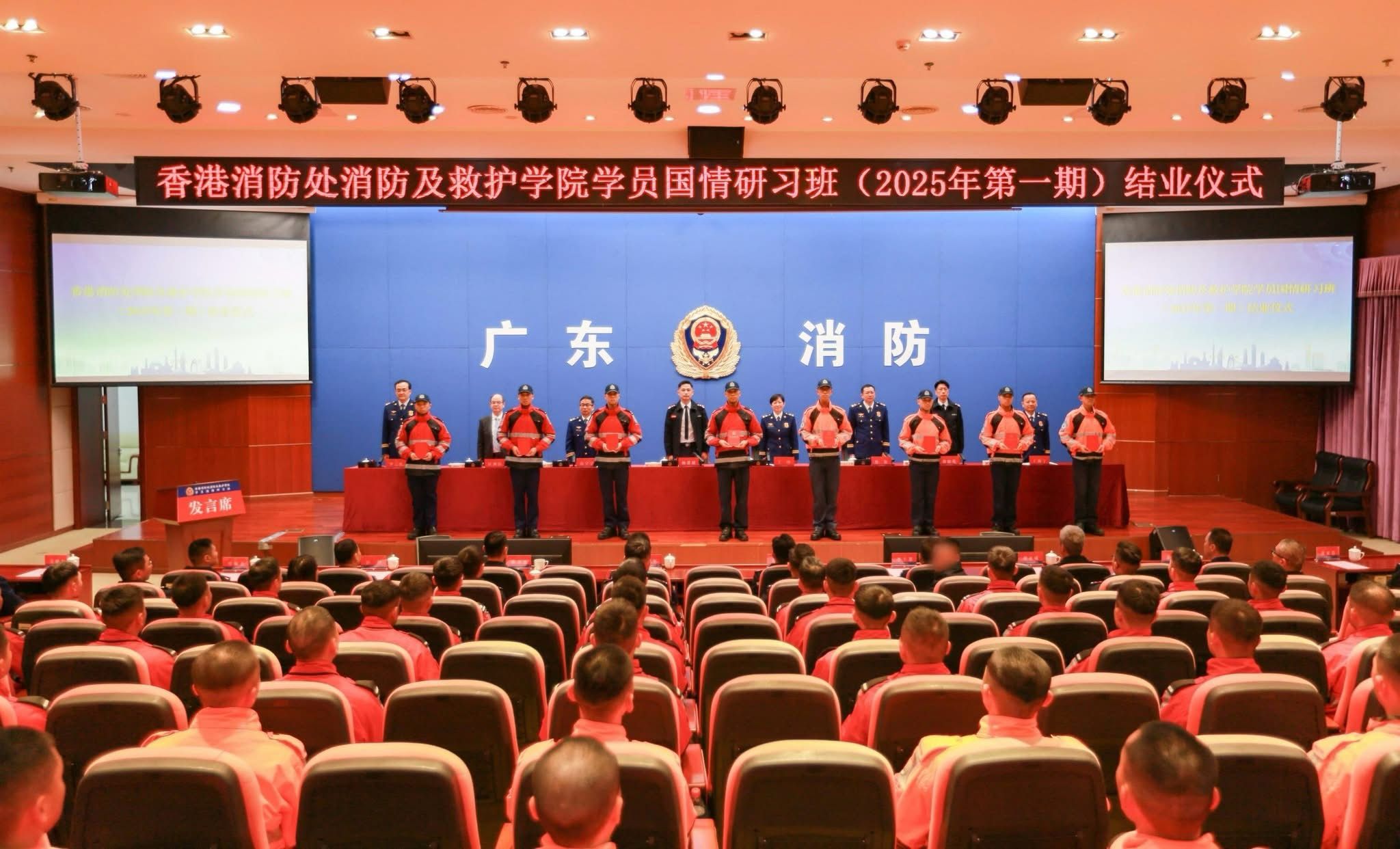 是次國情研習班結業儀式由廣東省消防救援總隊總隊長高寧宇主持,國家消防救援局辦公室主任王瑋、廣東省消防救援總隊政治委員肖梟,以及香港消防處處長楊恩健出席結業儀式及致辭,並頒發結業證書給學員。一眾領導其後亦進行座談交流。