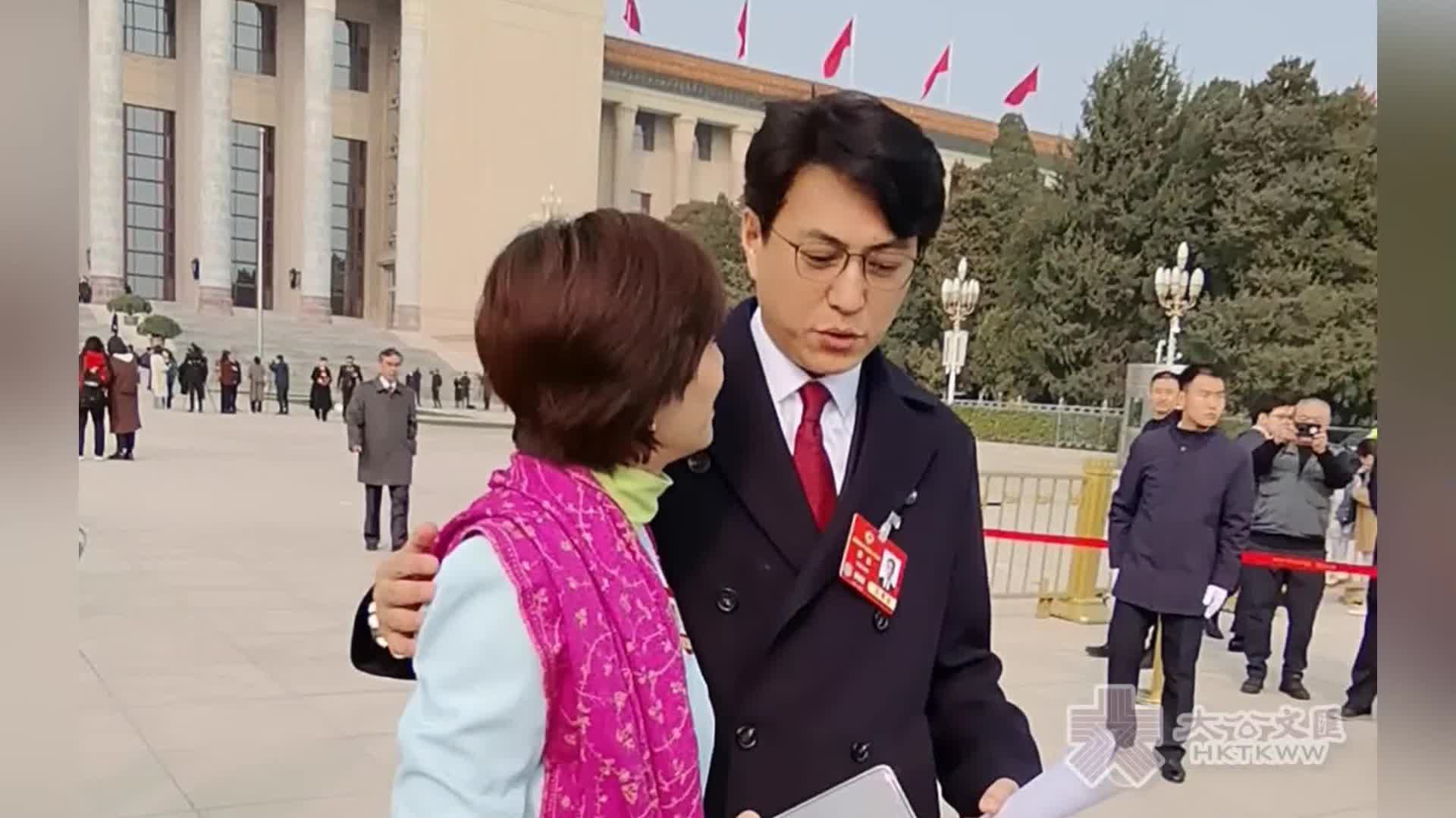 港區全國政協委員姚珏與全國政協委員、中國煤礦文工團團長靳東走出會場,細節之處見人品,靳東紳士地挽着姚珏的肩。姚珏對靳東說:「圖片發給我,我還沒有發朋友圈,我準備用你的發。」