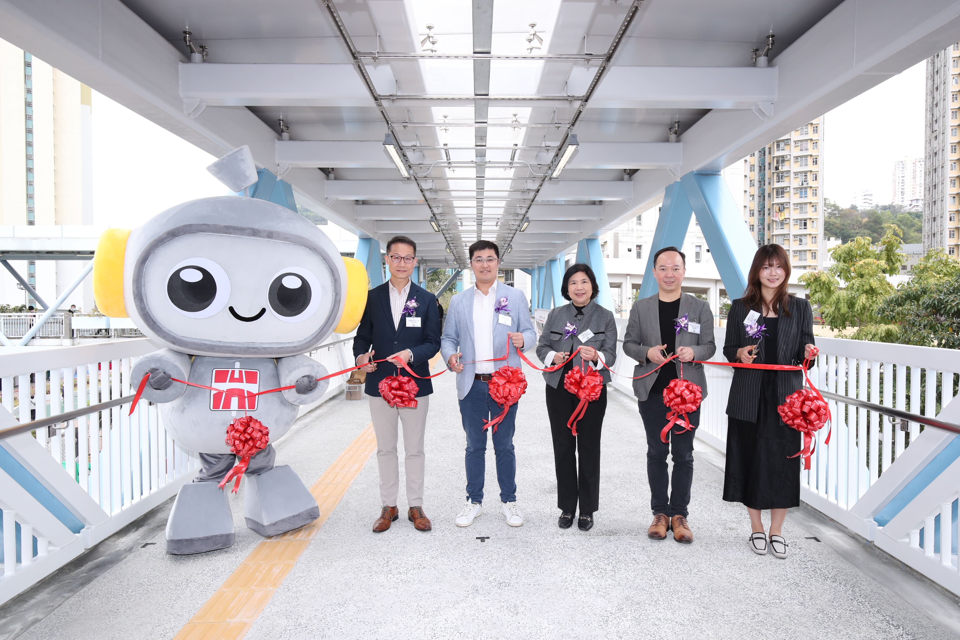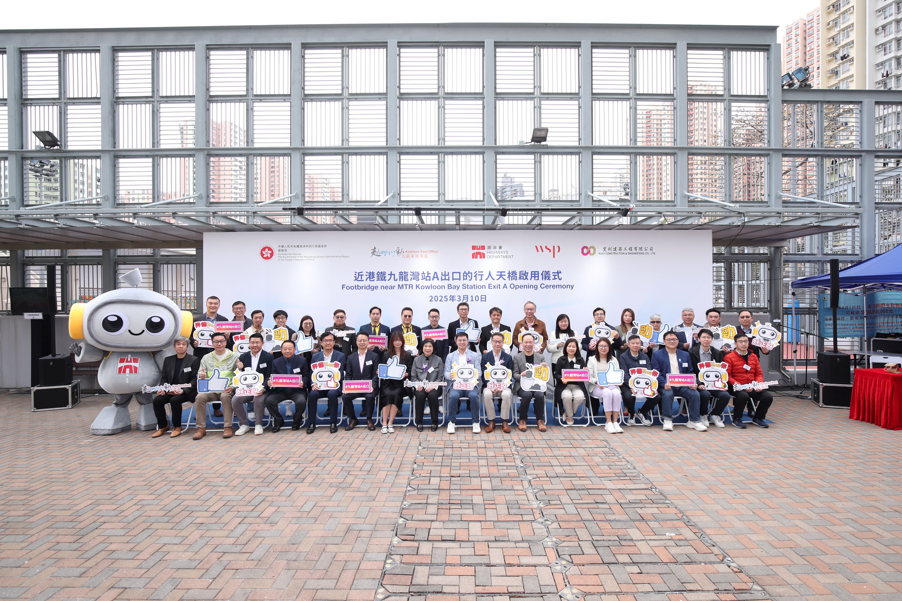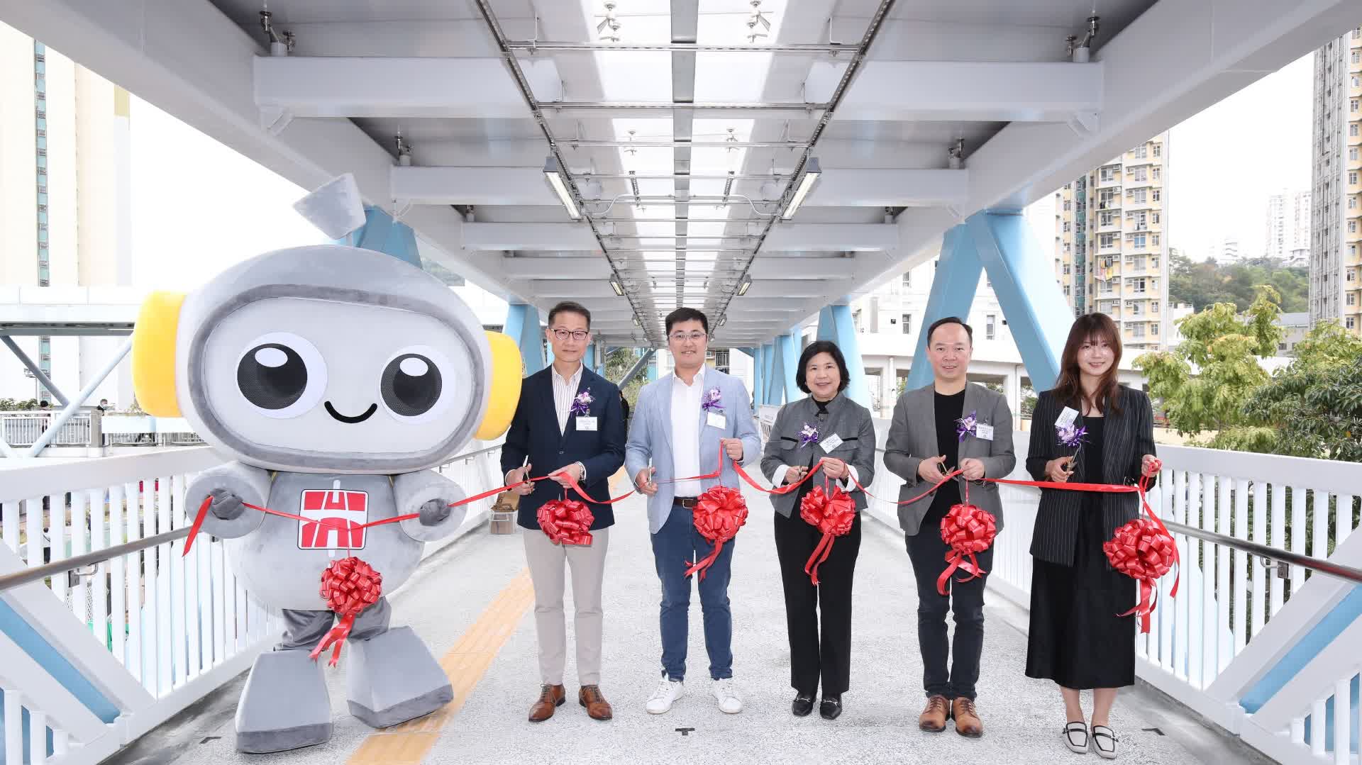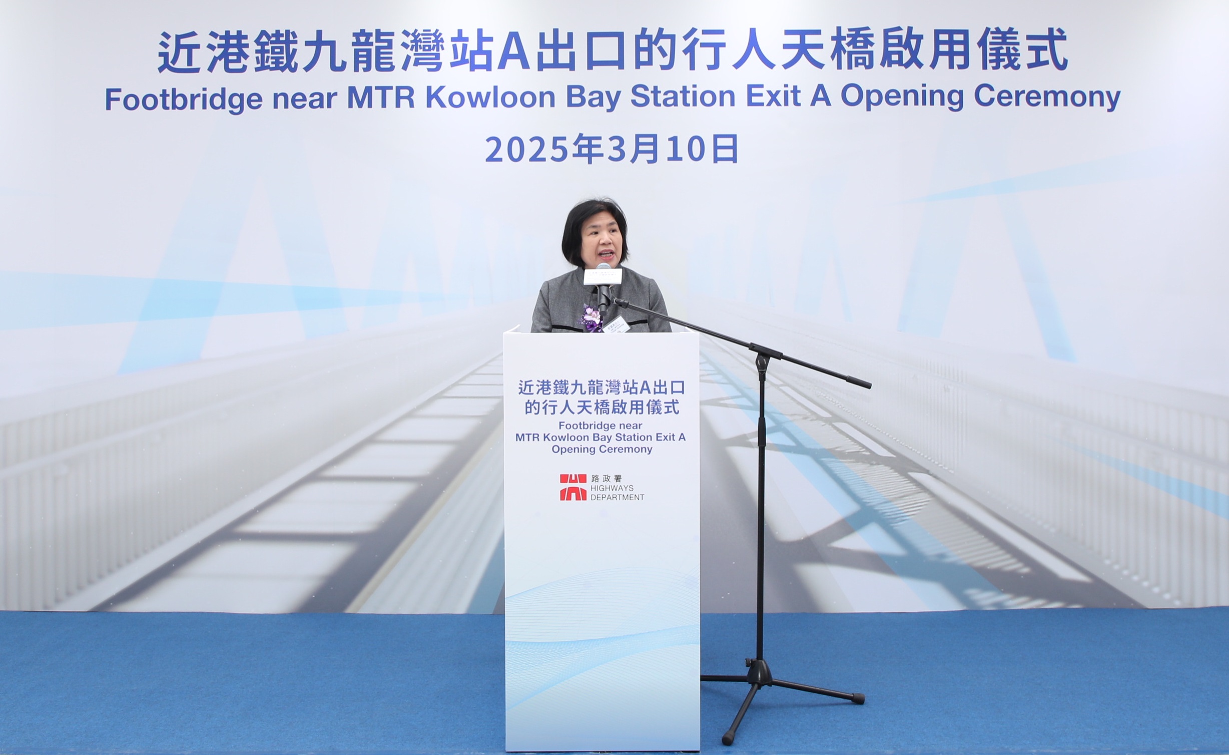鄰近港鐵九龍灣站A出口的新行人天橋今日(10/3)啟用。天橋由發展局起動九龍東辦事處倡議、路政署興建,全長約45米,淨闊約4米,橫跨觀塘道,設有有蓋斜道連接至舊行人天橋下層平台,提供便利的無障礙通道。此外,天橋的外觀設計參考了周邊布局,融入社區環境。 起動九龍東專員靳嘉燕出席啟用儀式時表示,九龍灣站是東九龍交通樞紐,人流擁擠。舊行人天橋連接牛頭角下邨、牛頭角上邨及淘大花園南面,人流高峰時段特別繁忙。為此,起動九龍東辦事處倡議興建兩條橫跨觀塘道的行人天橋,以分流人潮。九龍灣站B出口的行人天橋自2023年1月啟用以來,使用率甚高。A出口新天橋啟用將進一步加強九龍灣站與社區的連繫,完善行人網絡,方便居民出行。 起動九龍東辦事處會繼續致力推展「易行九龍東」的概念,提升行人暢達度和區內連繫。