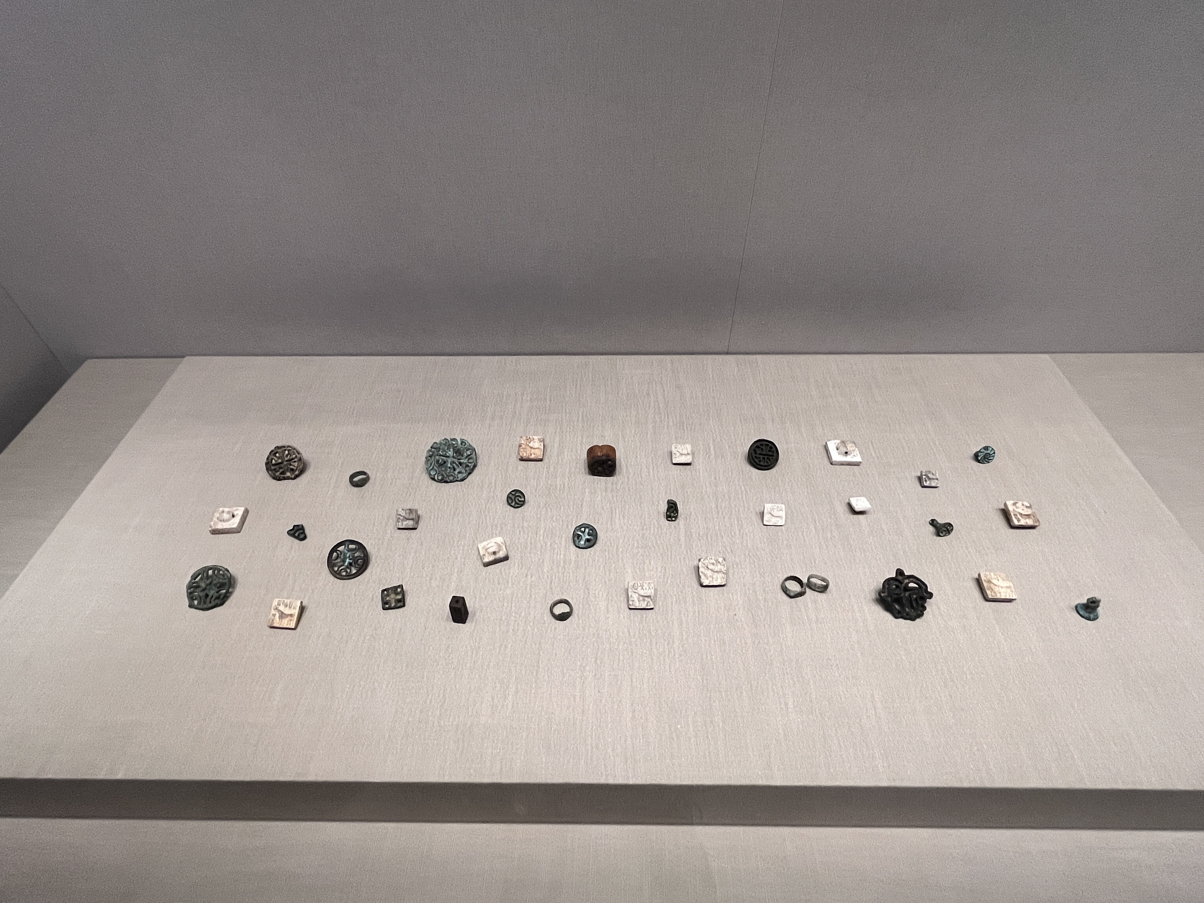 記者在現場看到,此次展覽展品涵蓋中國商代青銅圖形印、兩河流域楔形文字印、韓國商代紋飾印章、中亞絲路符號古印等,材質包括銅、陶、石、骨等。印紋題材既有中國明清流派篆刻技法,亦有域外印章的多元風格。西泠印社社委會主任、副社長龔志南指出,展覽通過印章這一獨特載體,帶領觀眾窺見人類文明的多樣性。