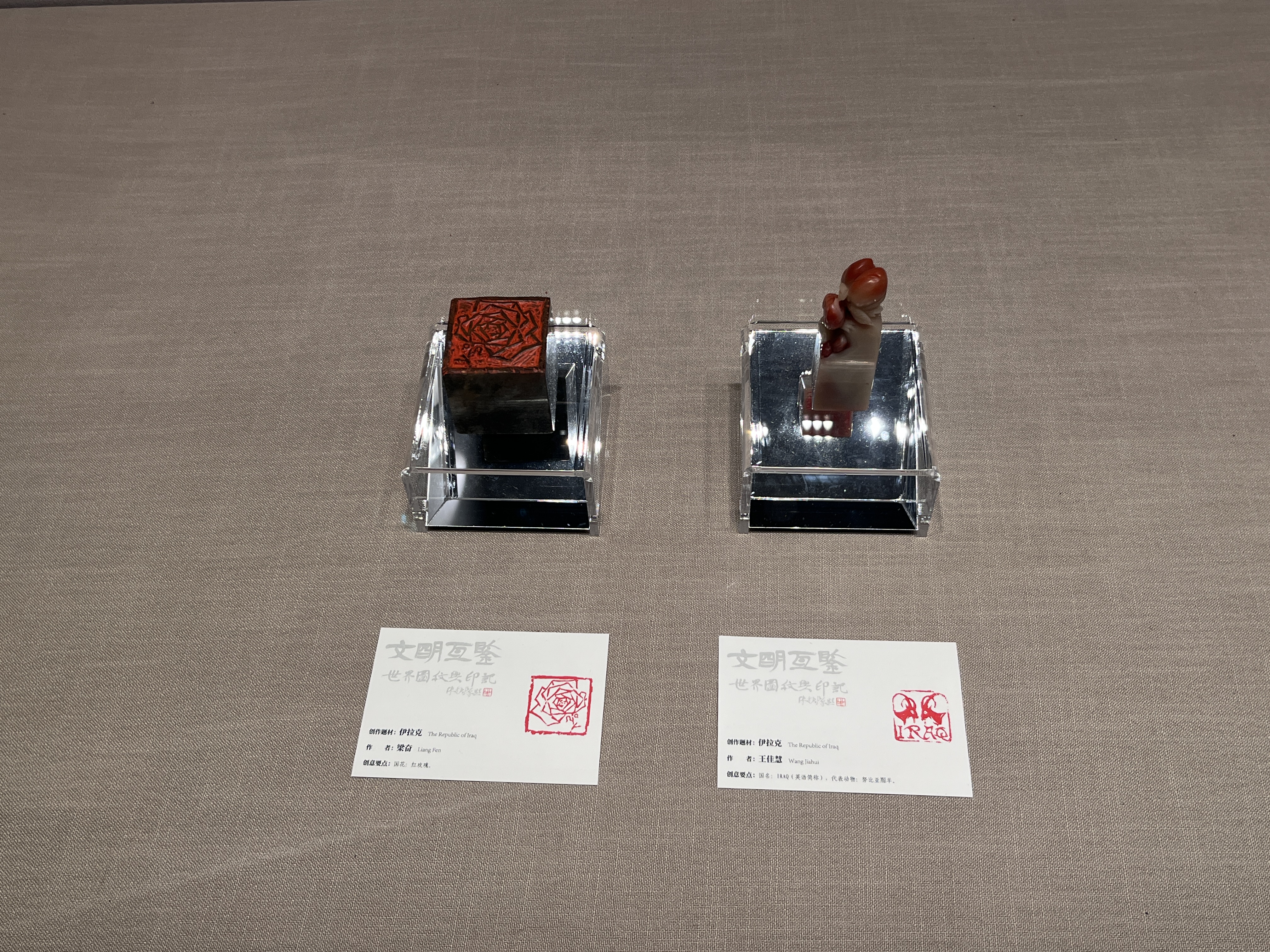 從商代的第一枚圖形印,到兩河流域的楔形文字印;從東亞盛開的牡丹、西亞綻放的鬱金香,再到南亞莊嚴的佛塔、中亞樸實的岩畫……此次展出的印章作品包羅萬象、形制豐富,不僅能觀賞到濃縮中華文明基因的圖形印,還可遇見跨越五千年歷史的域外古印,刻有亞洲地區代表性建築、動物、國花等印章,以及眾多印屏藝術作品等。
